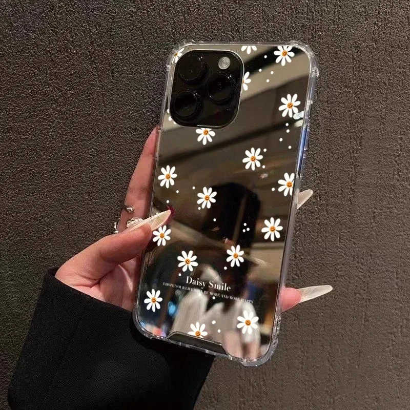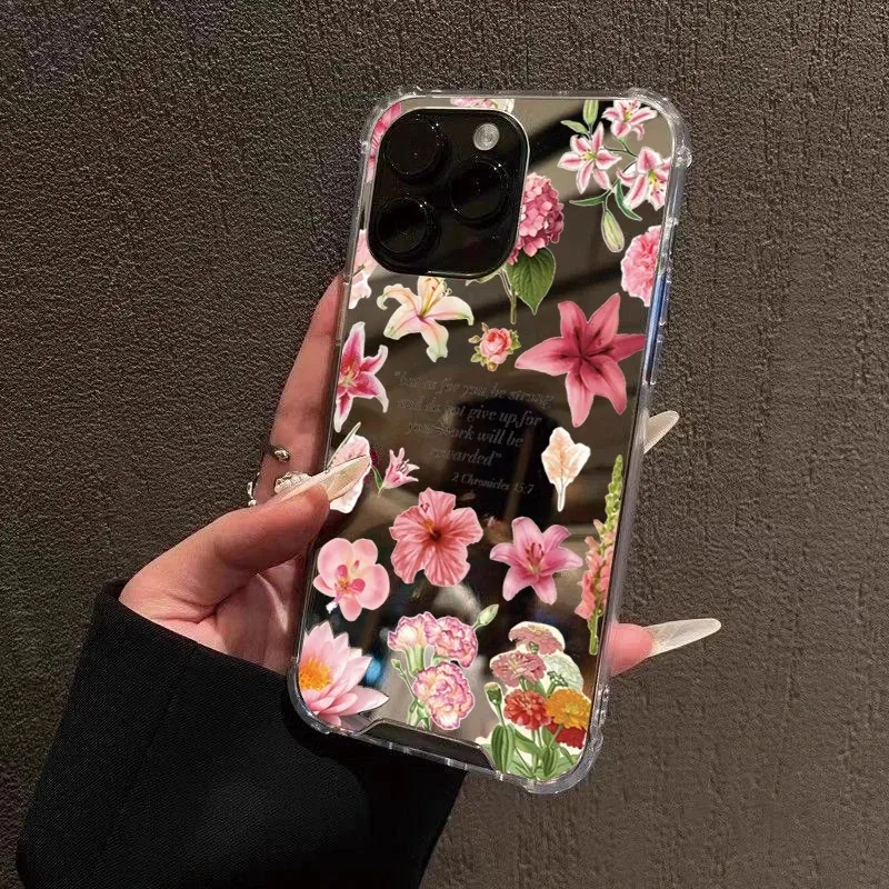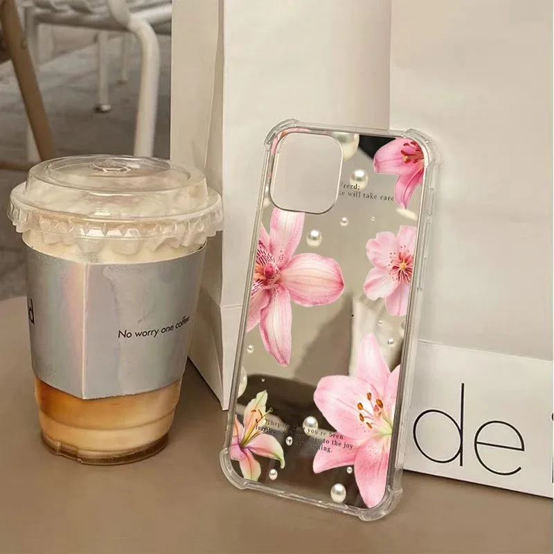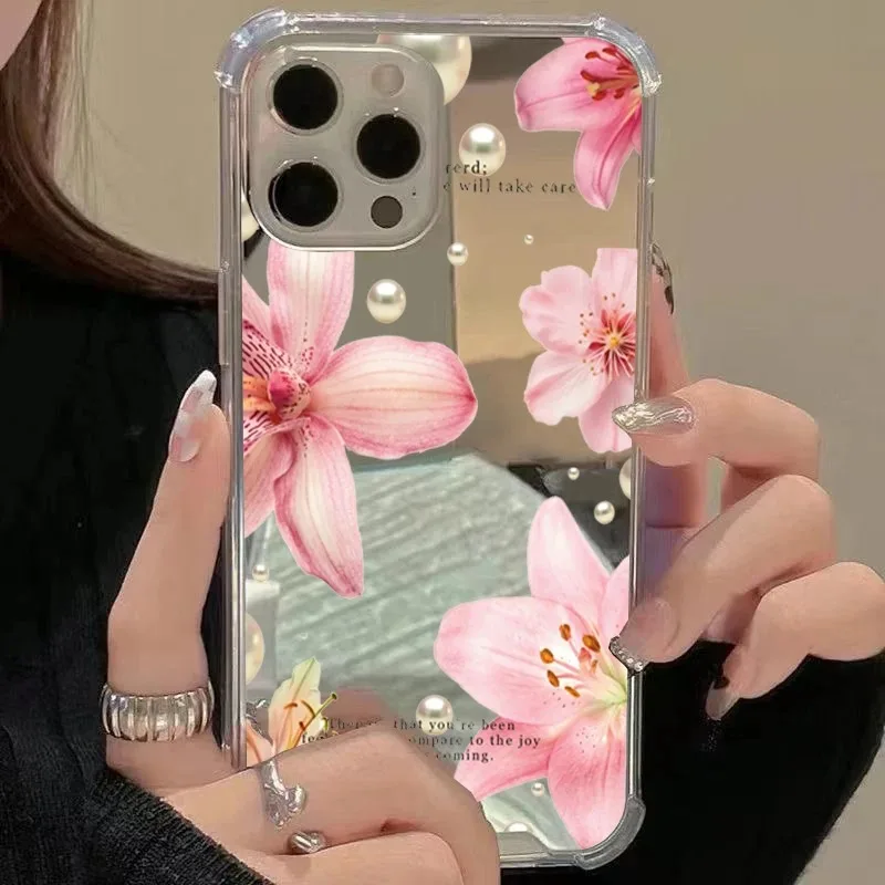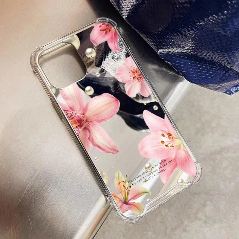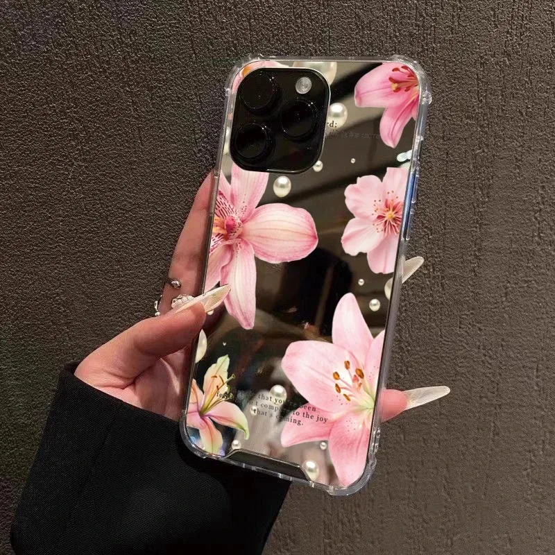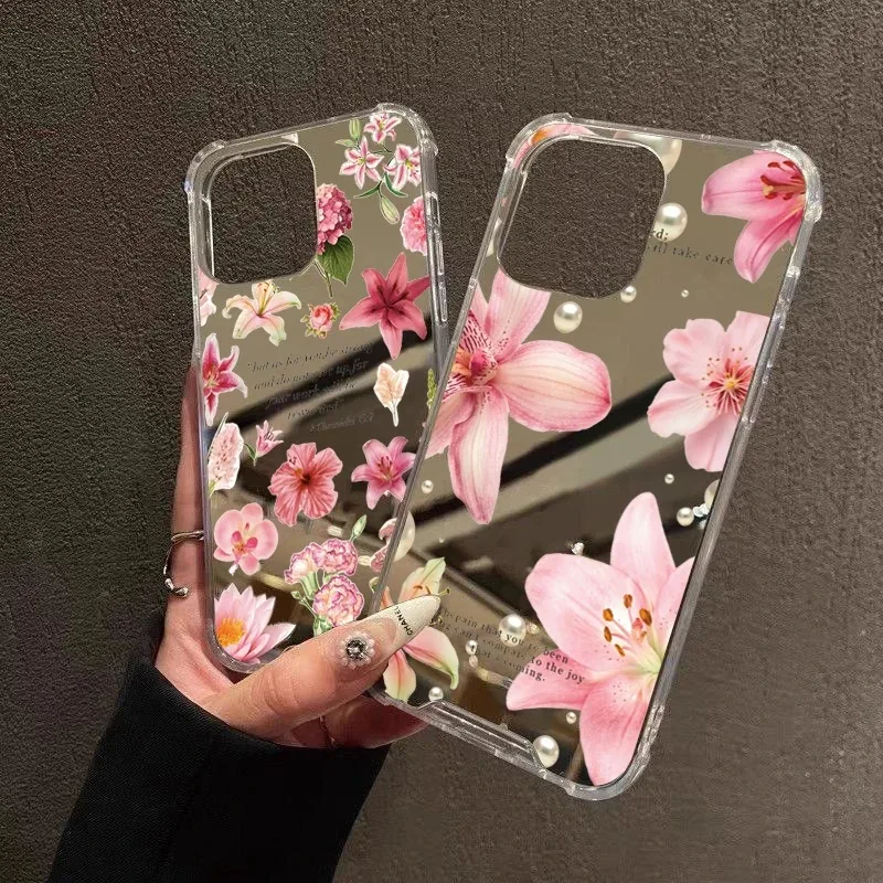 Funda de teléfono suave con espejo y patrón de flor de lirio para Samsung Galaxy S25 S24 S23 S22 Ultra Plus FE A06 A14 A23 A36 A52 A55 A56