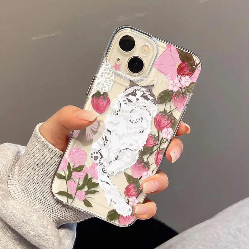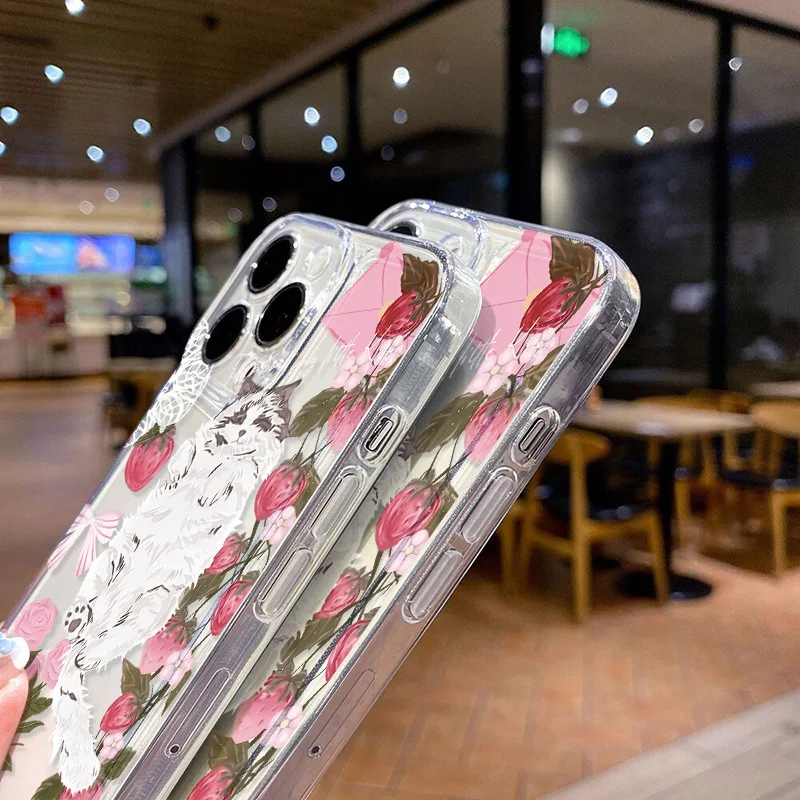 Funda de teléfono para Samsung S21 S20 FE S10 Plus S23 S22 S25 S24 Ultra A56 A36 A16 A55 A54 A53 cubierta transparente suave con forma de gato de flor