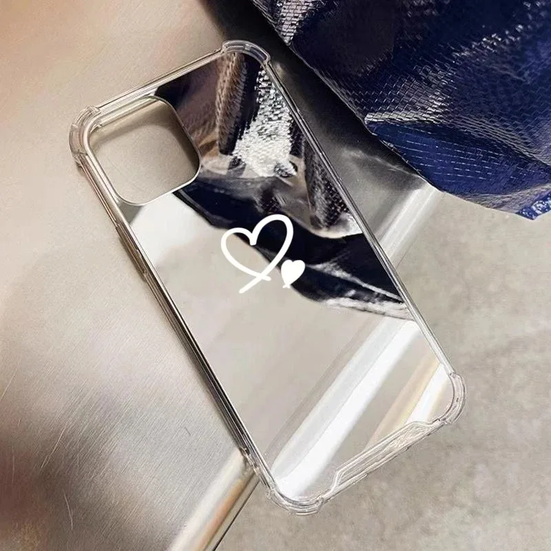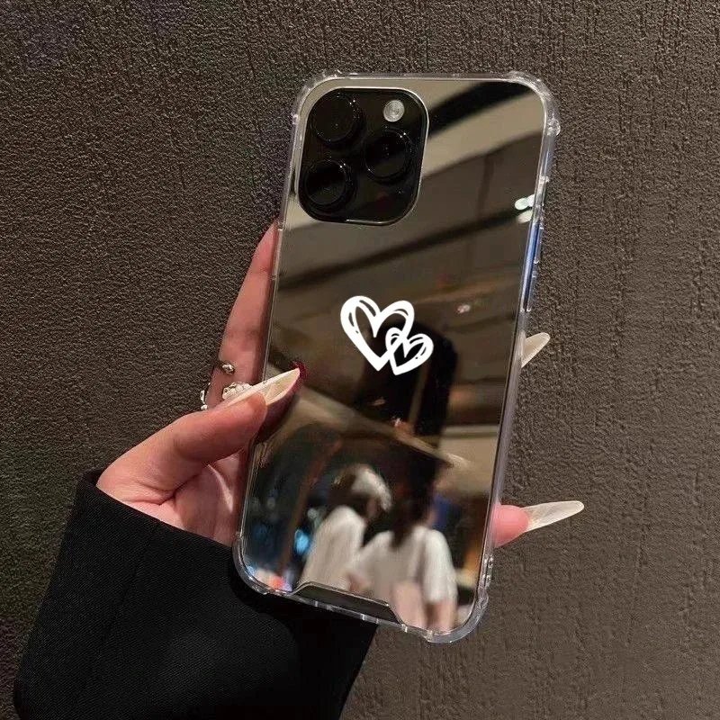 Funda de teléfono suave con espejo y corazón de amor para Samsung Galaxy S25 S24 S23 S22 S21 Ultra Plus FE A06 A14 A23 A36 A52 A55 A56