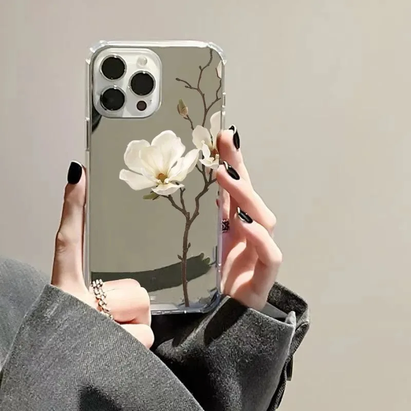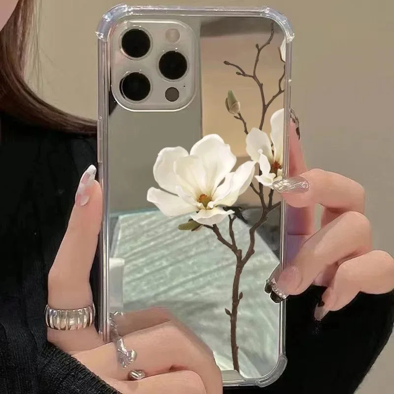 Funda de teléfono suave con espejo de flor de pera para Samsung Galaxy S25 S24 S23 S22 S21 Ultra Plus FE A06 A14 A23 A34 A36 A52 A55 A56