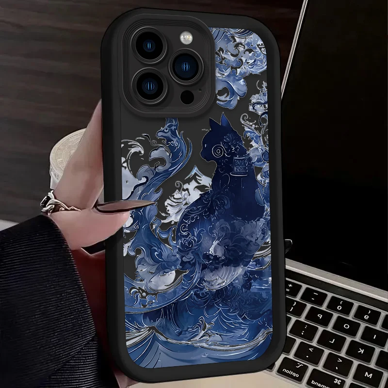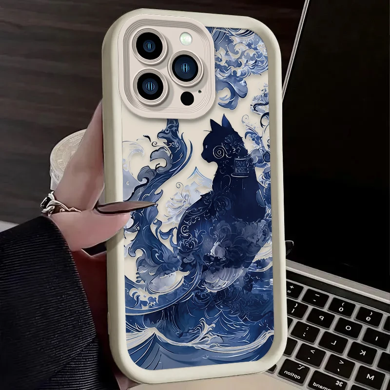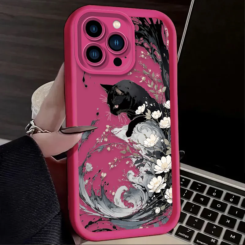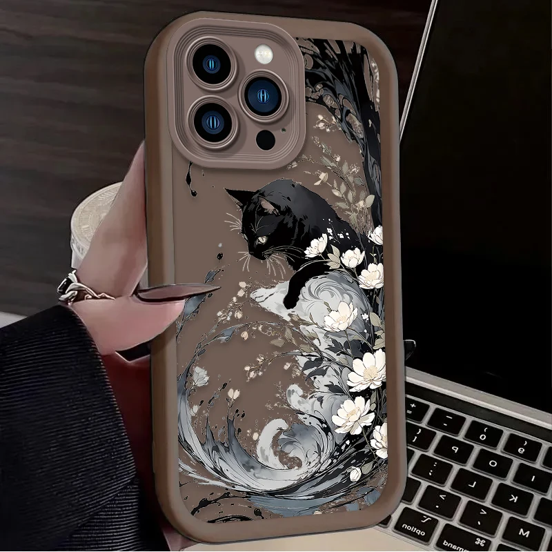 Funda de teléfono suave para iPhone 16 16E 15 14 13 12 11 Pro Max X XS X S Max XR SE 2020 SE4 7 8 Art Splash-ink Cat cubierta a prueba de golpes