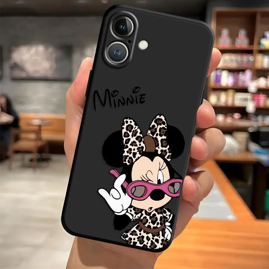 Funda de teléfono suave negra para iPhone 7 8 15 16 14 Plus XR 17Air 13 12 11 17 Pro Max XS Max Disney Cute Minnie - imagen 4