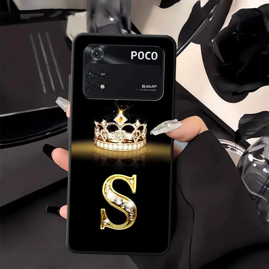 Funda de teléfono suave negra con letras y corona de diamante para Xiaomi Poco C71 C61 M3 M4 M7 Pro X3 X4 X5 X7 Pro F1 C75 M5 F3 C40 C50 - imagen 5