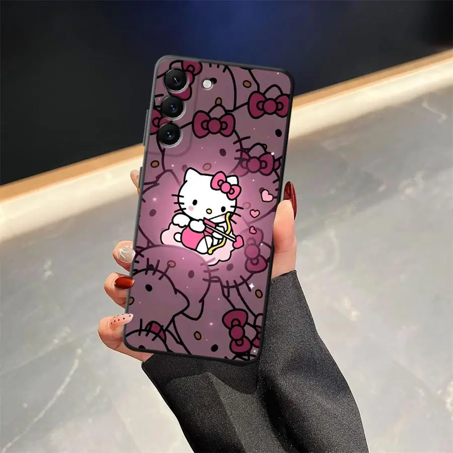 Funda de teléfono suave negra para Samsung Galaxy A17 A70 A06 A50 A30 A15 A20 A13 A05 A40 A16 A04 A10 A12 Hello Kitty