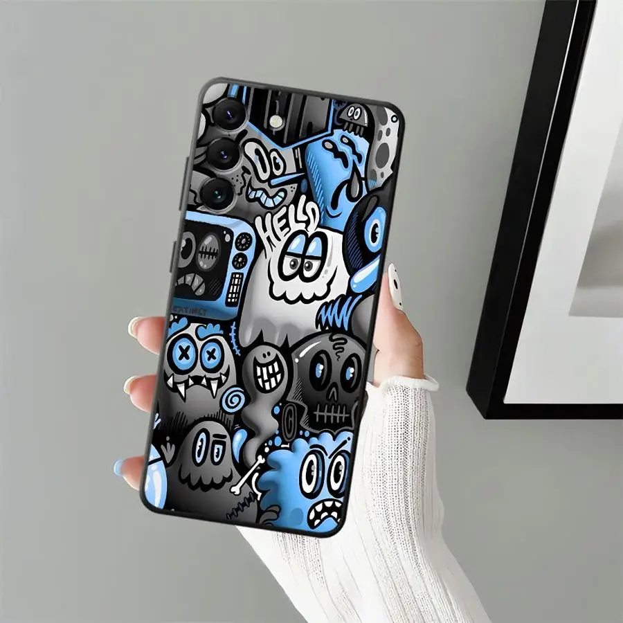 Funda de teléfono suave negra para Samsung Galaxy A36 A22 A52 A23 A53 A26 A72 A24 A55 A41 A32 A51 A73 A25 A71 A35 Graffiti púrpura