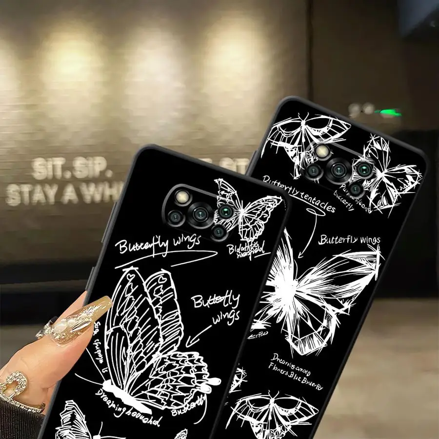 Funda de teléfono suave negra para Xiaomi Poco C61 C40 C71 C75 C50 F1 F3 X3 X4 X5 X7 Pro M5 M3 M4 M7 Pro hermosa mariposa