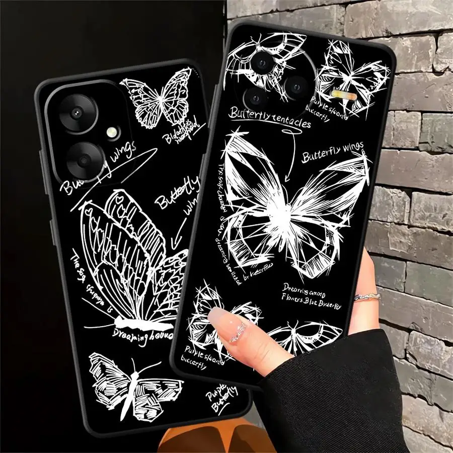 Funda de teléfono suave negra para Xiaomi Redmi A1 A2 Plus 14C 12C A3 10 K40 K80 Pro 13C A4 A5 9 hermosa mariposa