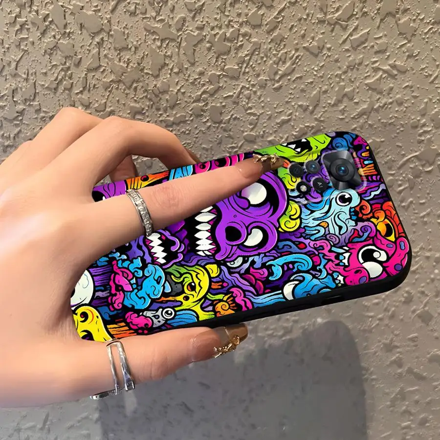 Funda de teléfono suave negra para Xiaomi Redmi Note 11s 7 8 12s 9S 13 14 Pro Plus 10S 9 10 11 12 Pro Trendy Monster Graffiti - imagen 5