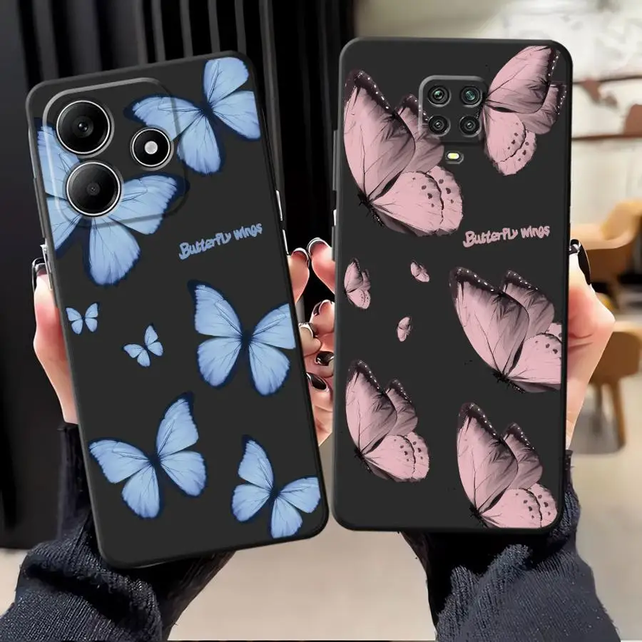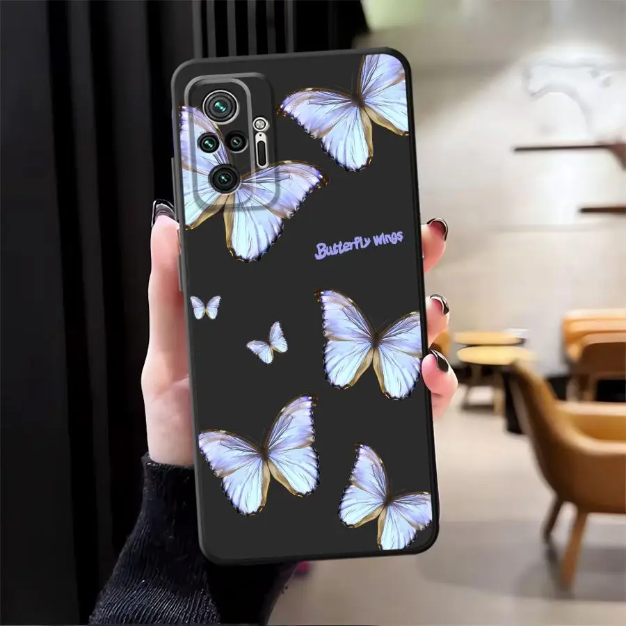 Comprar Funda de teléfono suave negra para Xiaomi Redmi Note 9S 11s 13 14 Pro Plus 7 8 10S 9 10 11 12 Pro 12s mariposa roja y azul