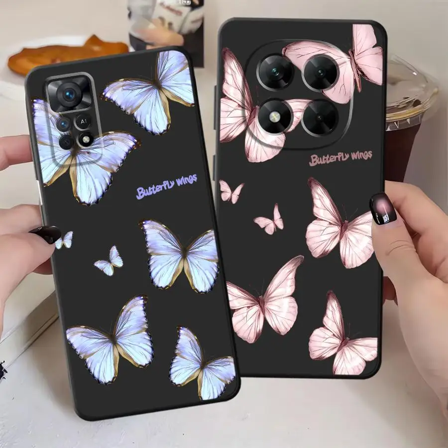Comprar Funda de teléfono suave negra para Xiaomi Redmi Note 9S 11s 13 14 Pro Plus 7 8 10S 9 10 11 12 Pro 12s mariposa roja y azul