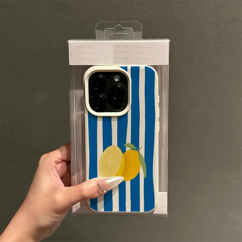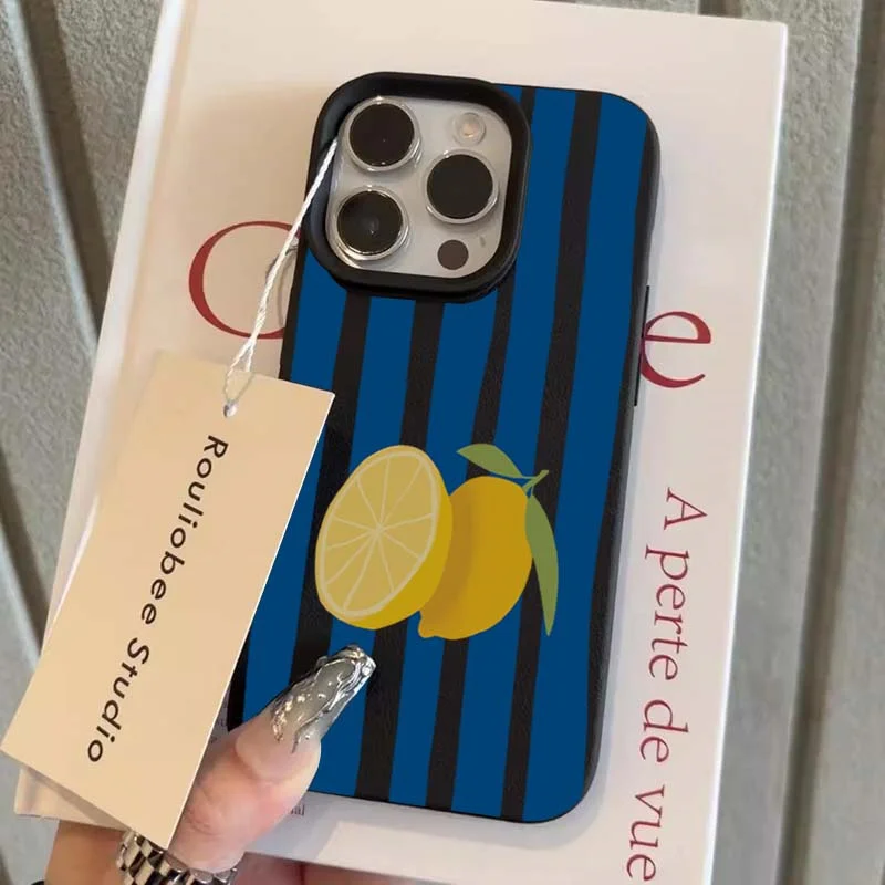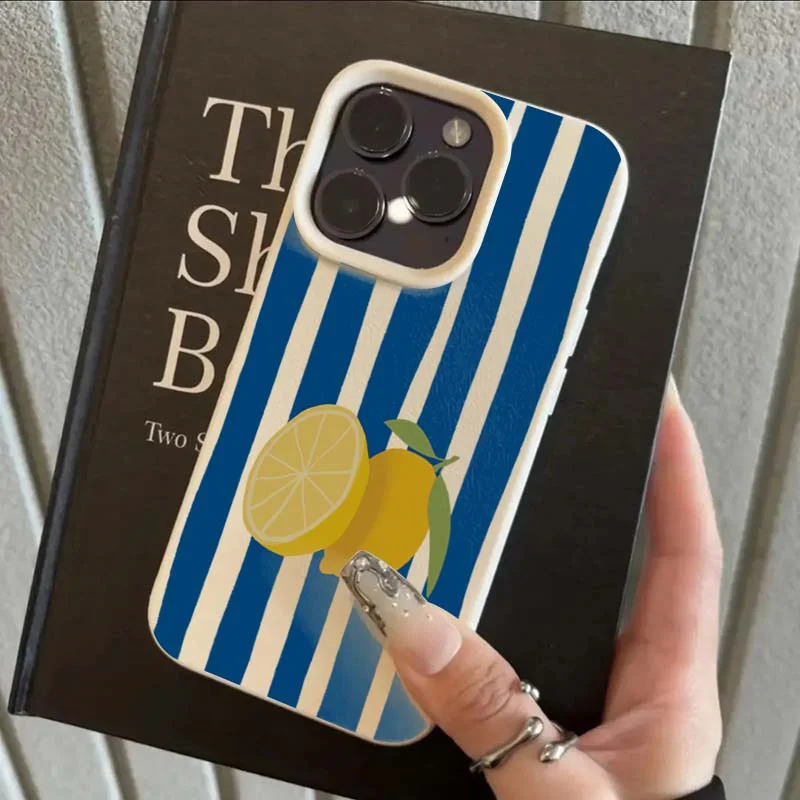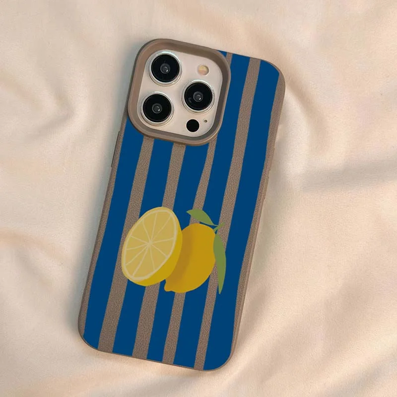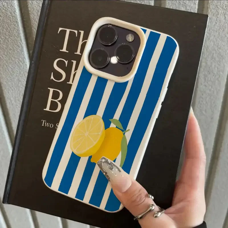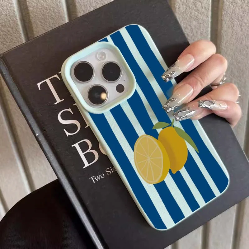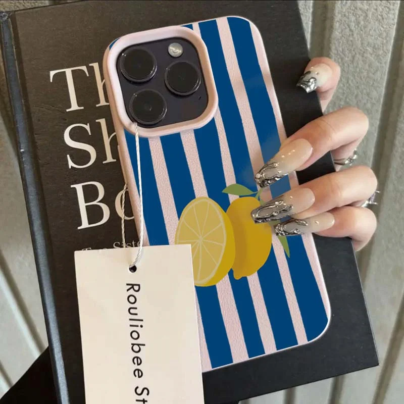 Comprar Funda de teléfono suave con patrón de rayas azules y limón amarillo para iPhone 16 15 14 13 Pro Max Plus 11 12 X XR XS Max 16e, funda de TPU a prueba de golpes