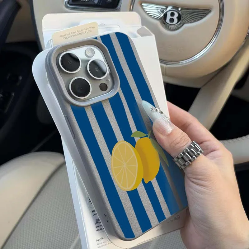 Comprar Funda de teléfono suave con patrón de rayas azules y limón amarillo para iPhone 16 15 14 13 Pro Max Plus 11 12 X XR XS Max 16e, funda de TPU a prueba de golpes