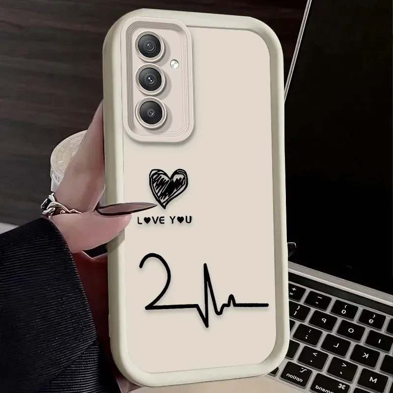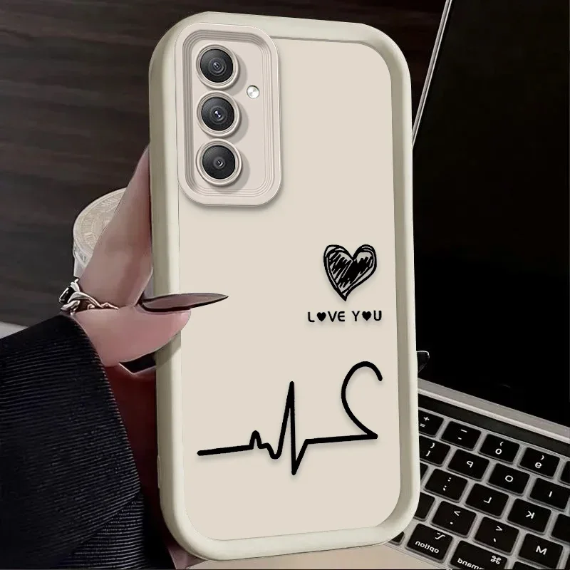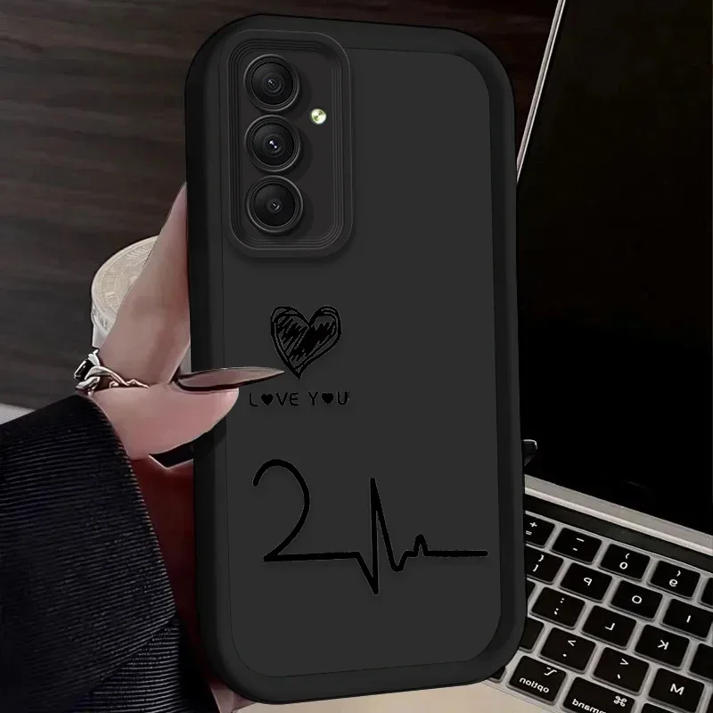 Funda de teléfono suave para Samsung Galaxy S24 S23 S25 Ultra S22 S21 Plus FE 5G A54 A34 A14 A73 A53 A33 5G Love Electrocardiogram
