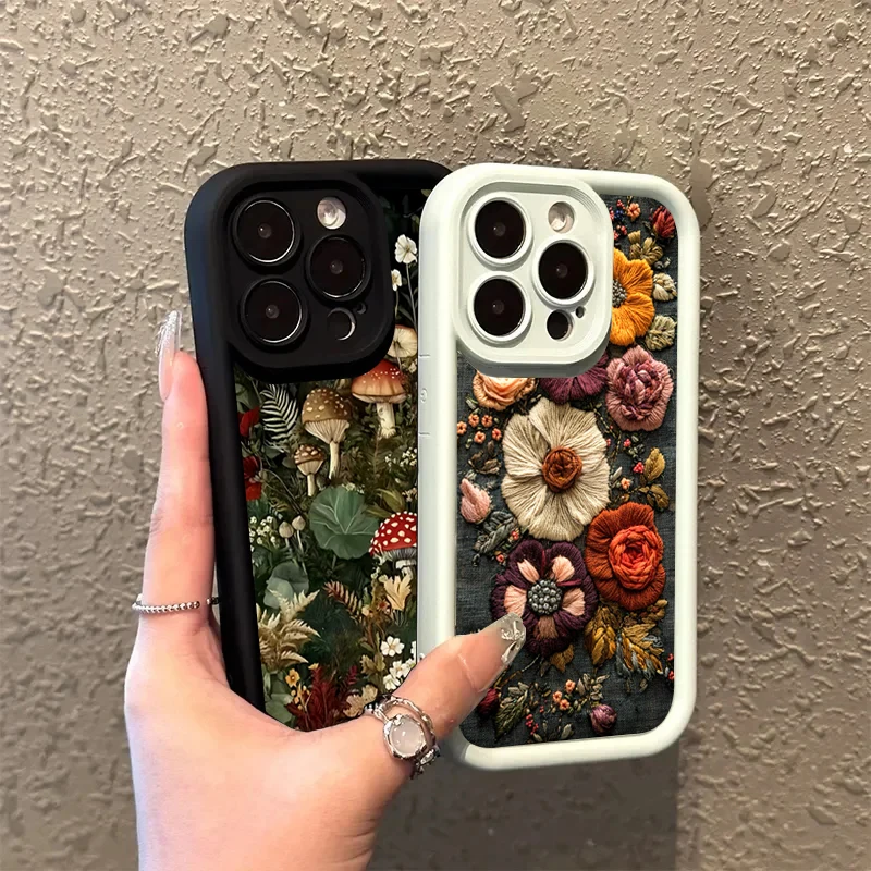 Funda de teléfono suave de silicona con patrón de hongo y flores bonitas para iPhone 11 12 13 14 15 16 Pro Max 17 Air 16E XS X XR 7 8 Plus