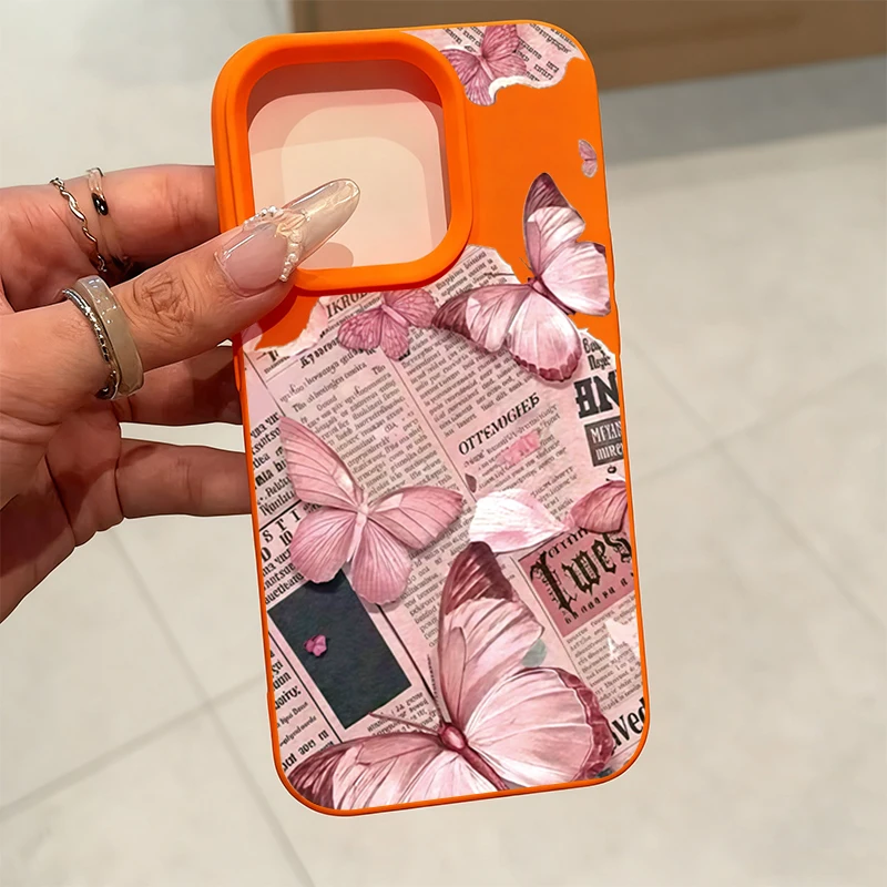Funda de teléfono suave de silicona con forma de mariposa rosa para iPhone 17 Air 16 16E 15 14 13 12 11 Pro Max XS XR X Plus, funda de caramelo a prueba de golpes