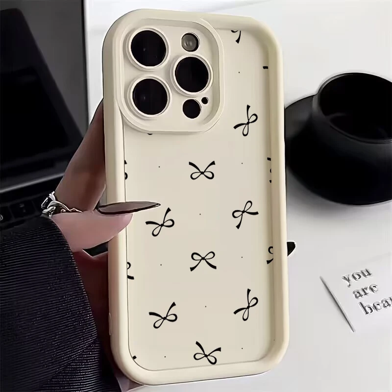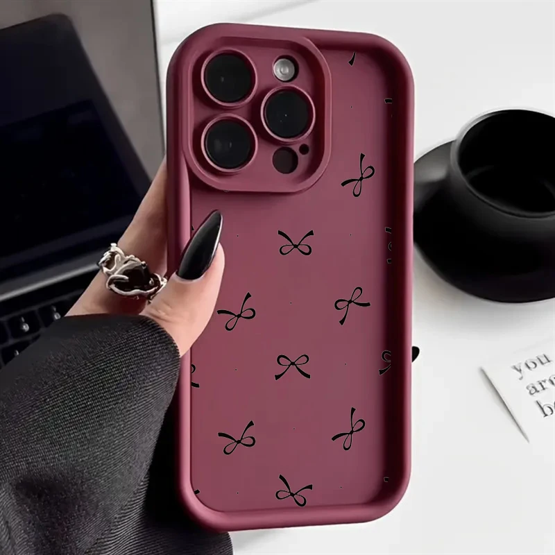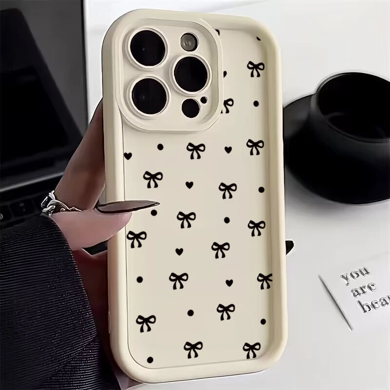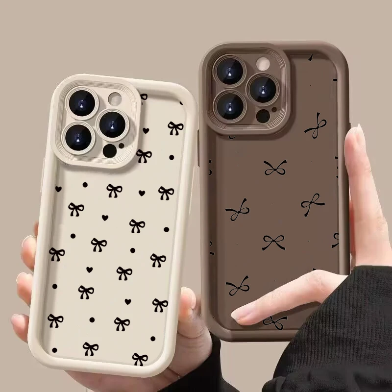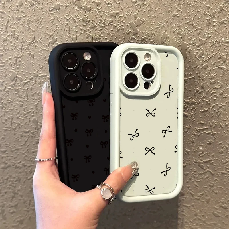 Funda de teléfono suave de silicona con lazo negro para iPhone 11 12 13 15 16 Pro Max 16E X XS XR 7 8 Plus SE2 contraportada a prueba de golpes