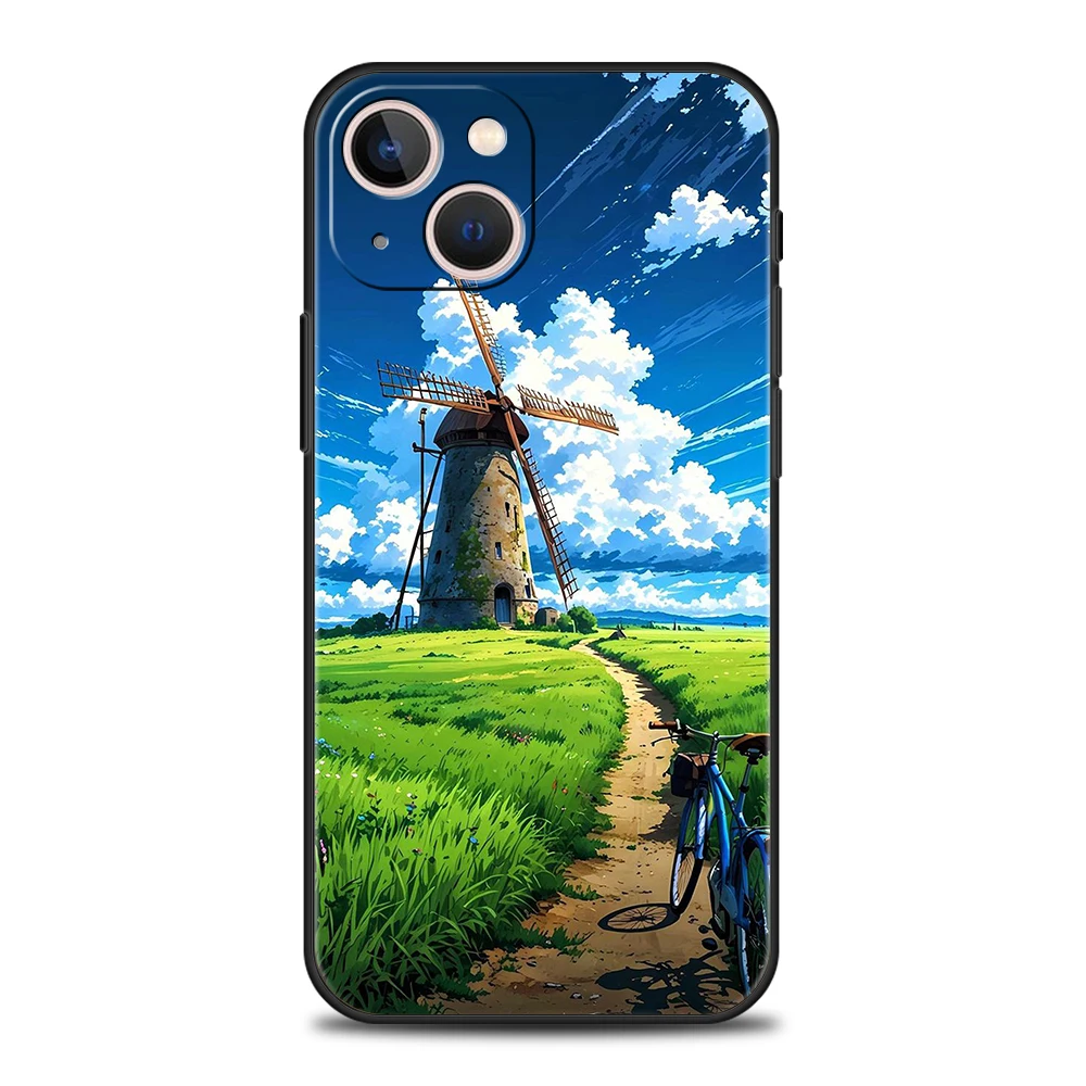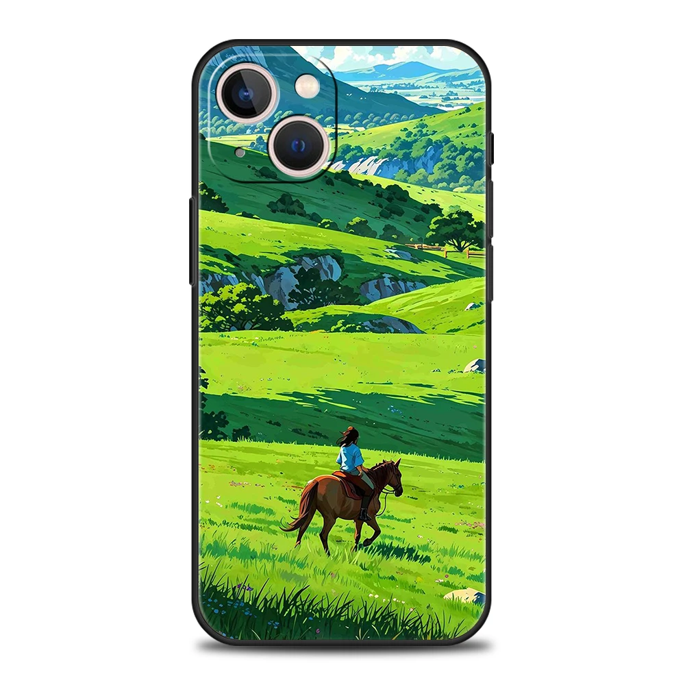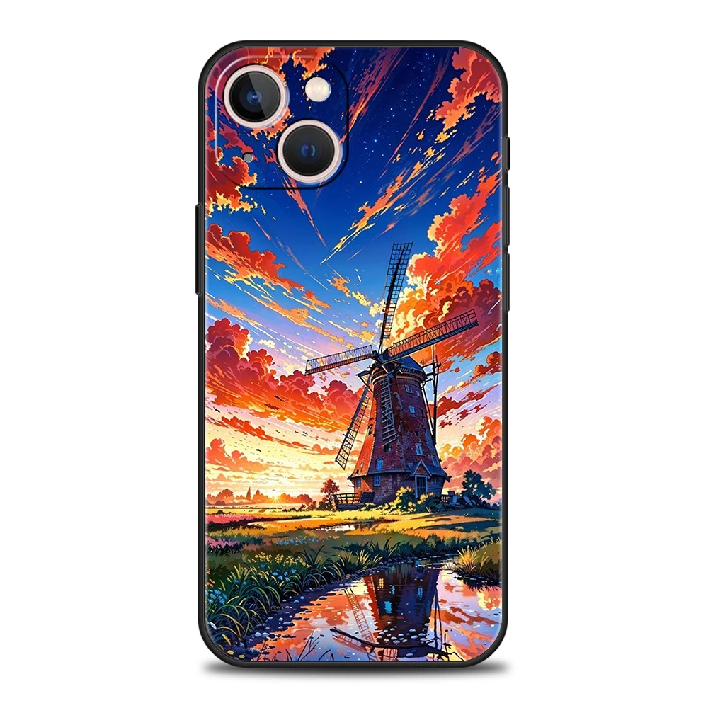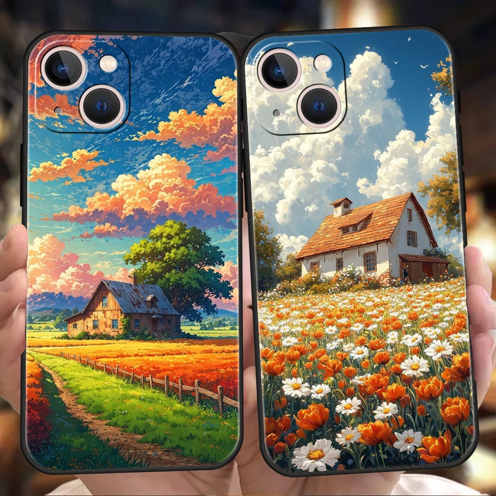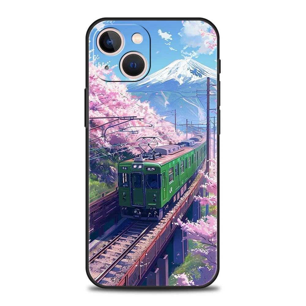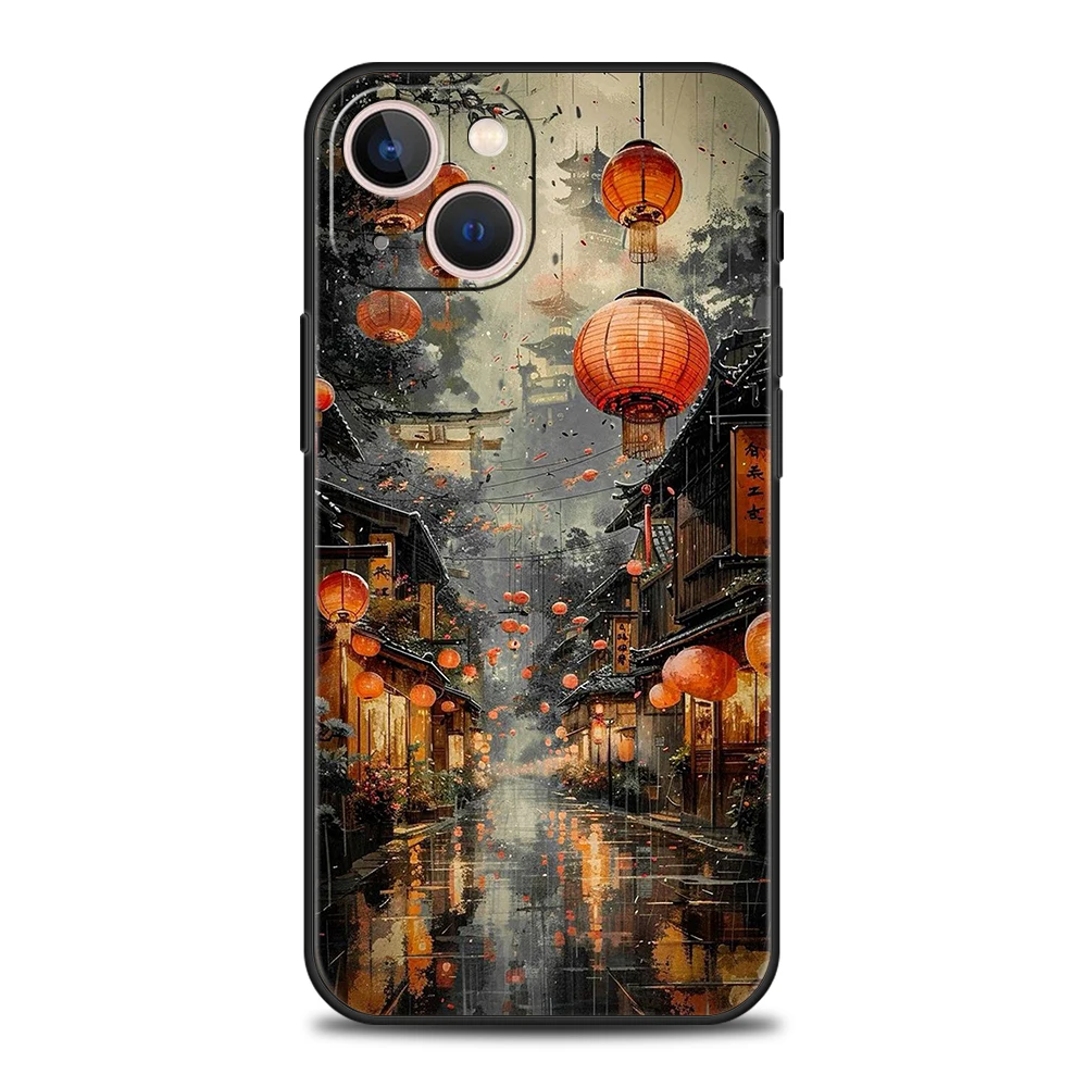Comprar Funda de teléfono suave de TPU de lujo para iPhone 16 11 15 14 Pro MAX 12 13 7 8 Plus X XR XS SE 2022 cubierta negra paisaje japonés