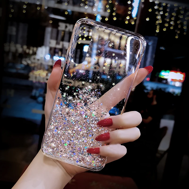 Comprar Funda de teléfono suave transparente con lentejuelas brillantes para OPPO, cubierta para teléfono, A9, 2020, A5S, A3S, A5, A7, F11, F9, F7, Realme, X, XT, C15, V5, A52, A92S, Reno z