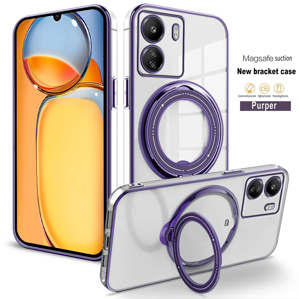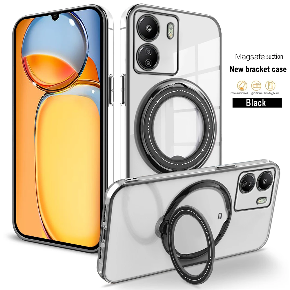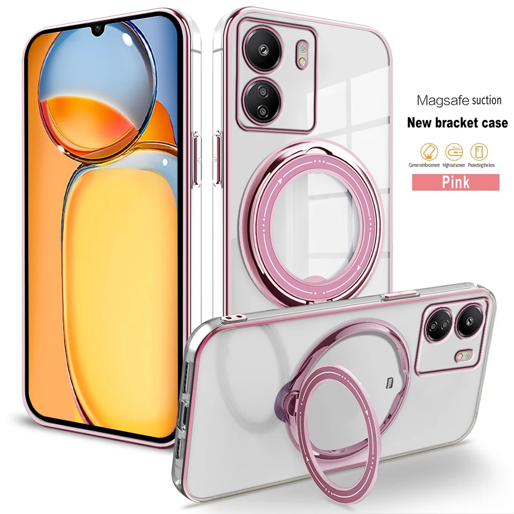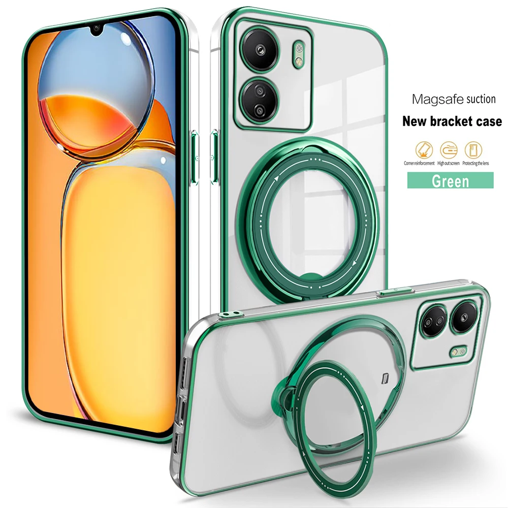 Para Magsafe, funda de teléfono de succión para Xiaomi Redmi 13C 4G, anillo giratorio chapado, funda con soporte magnético para coche Redmi13C Redme 13 C C13 4G