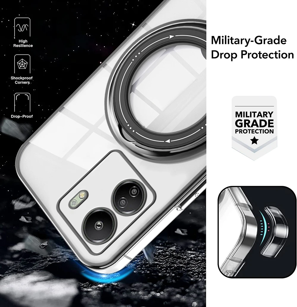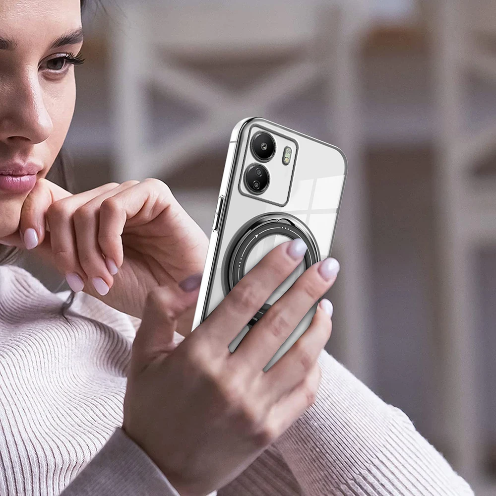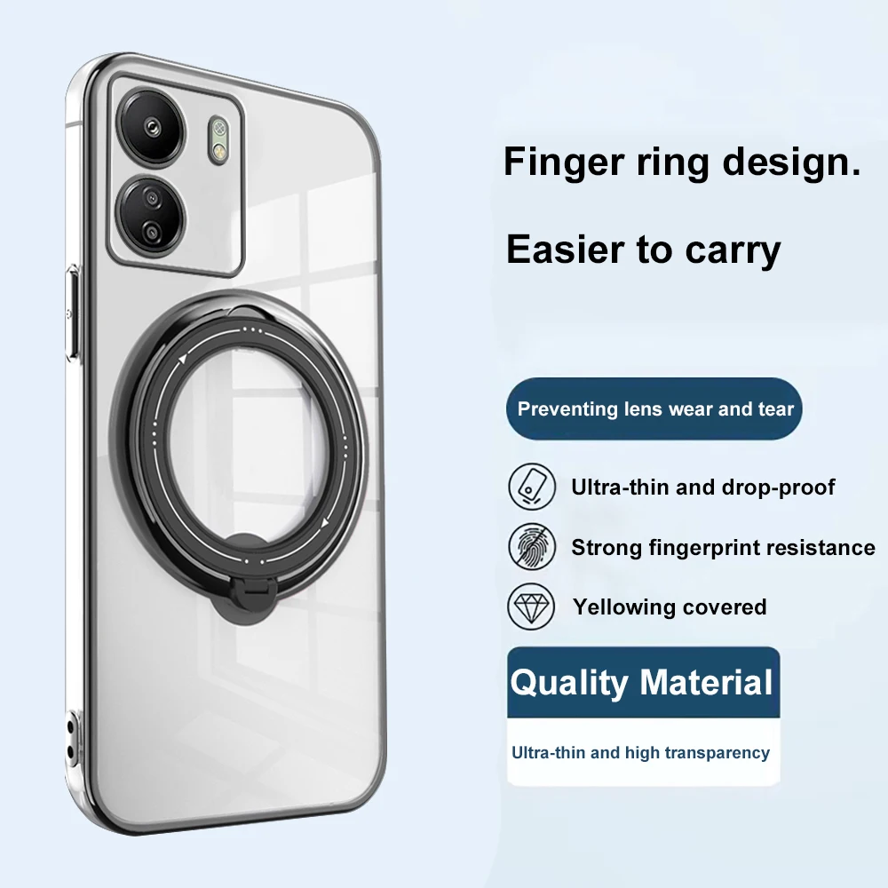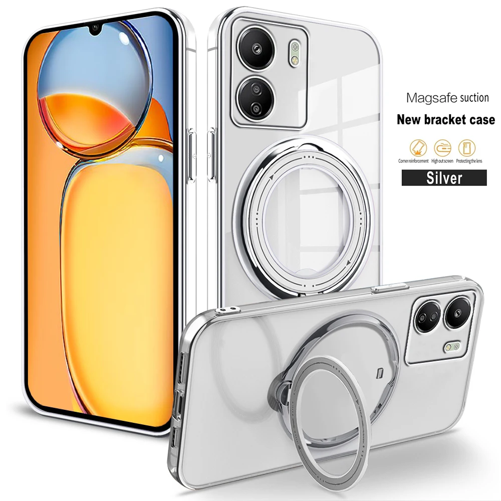 Para Magsafe, funda de teléfono de succión para Xiaomi Redmi 13C 4G, anillo giratorio chapado, funda con soporte magnético para coche Redmi13C Redme 13 C C13 4G