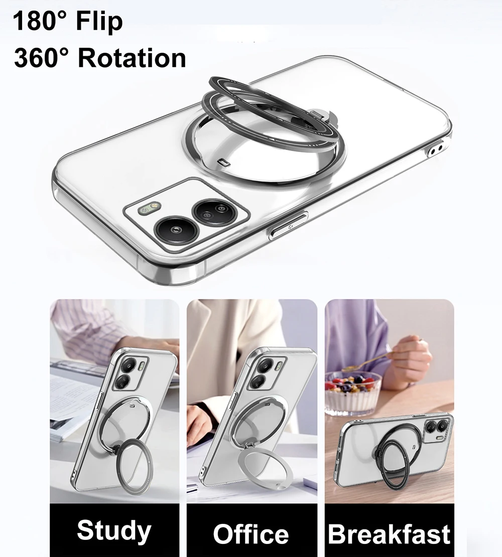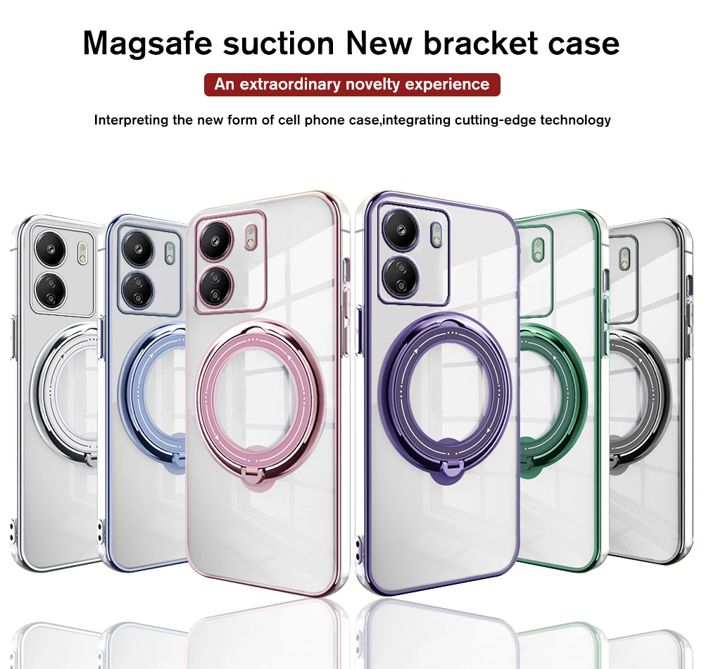 Comprar Funda de teléfono de succión Magsafe para Xiaomi Redmi 13C 4G, anillo giratorio chapado, cubierta de soporte magnético para coche Redmi13C Redme 13 C C13 4G