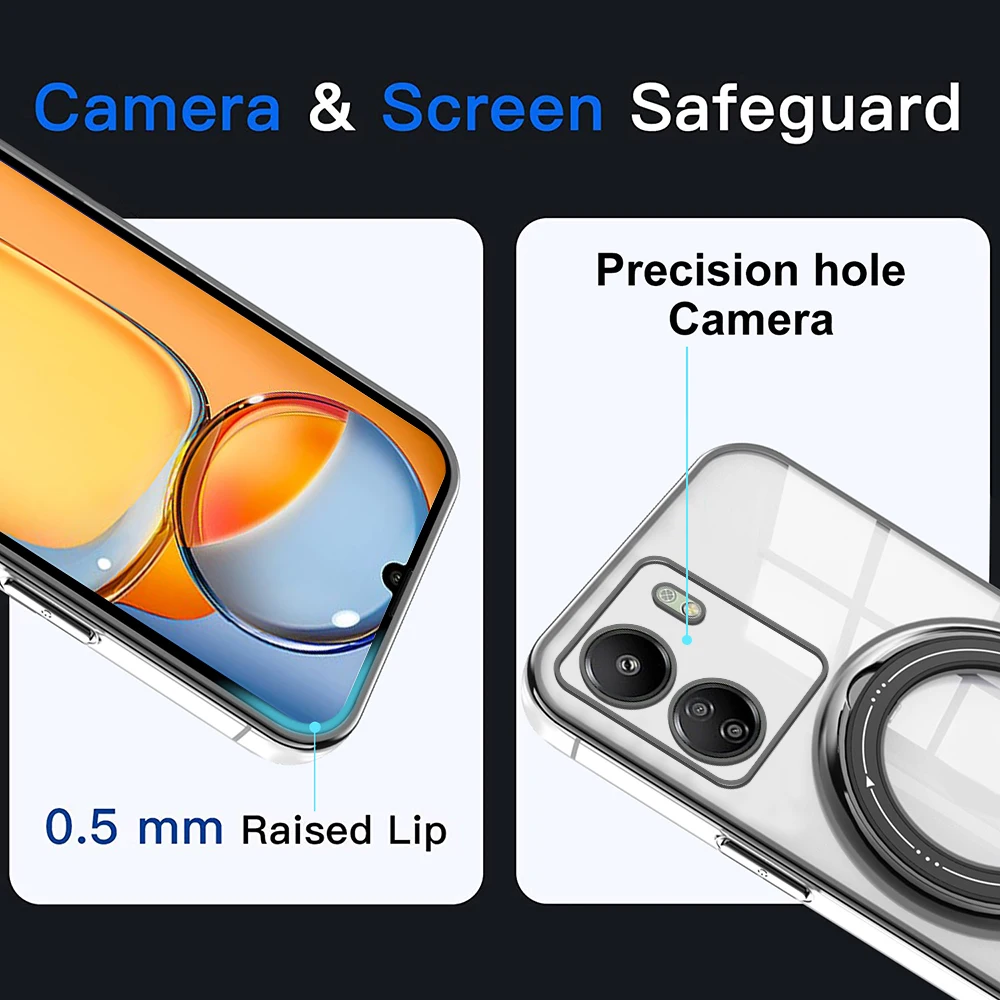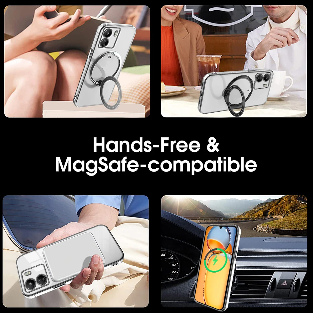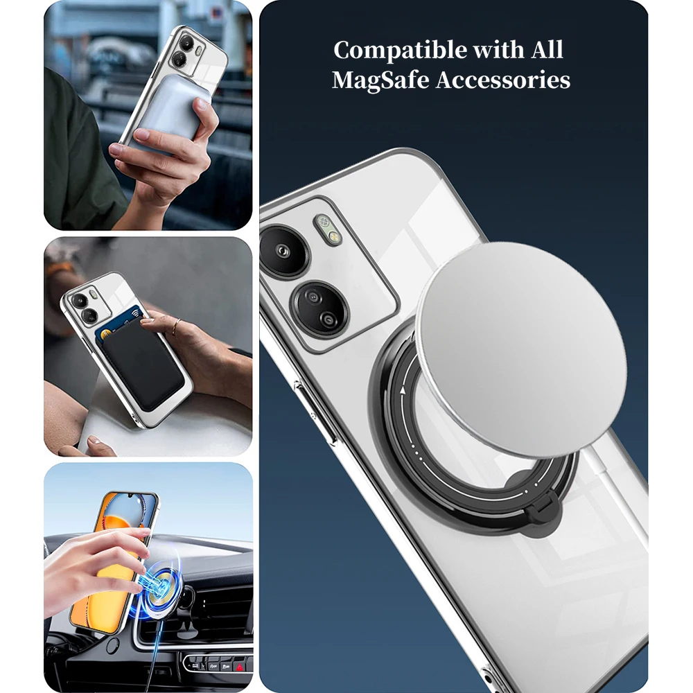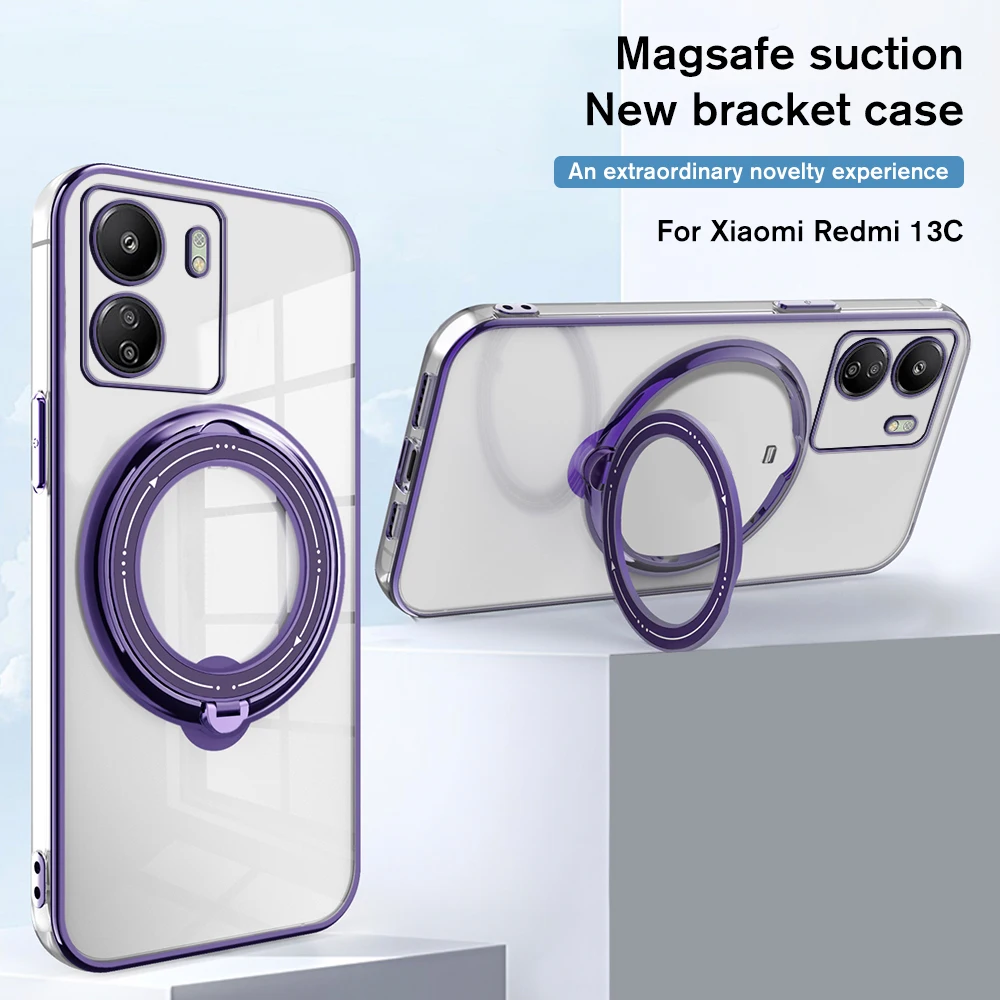 Para Magsafe, funda de teléfono de succión para Xiaomi Redmi 13C 4G, anillo giratorio chapado, funda con soporte magnético para coche Redmi13C Redme 13 C C13 4G