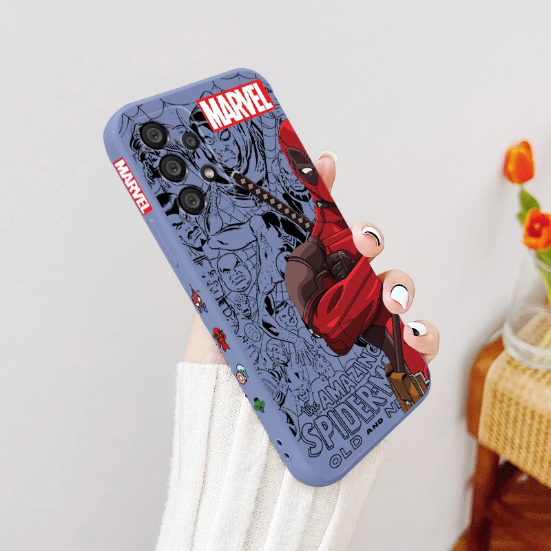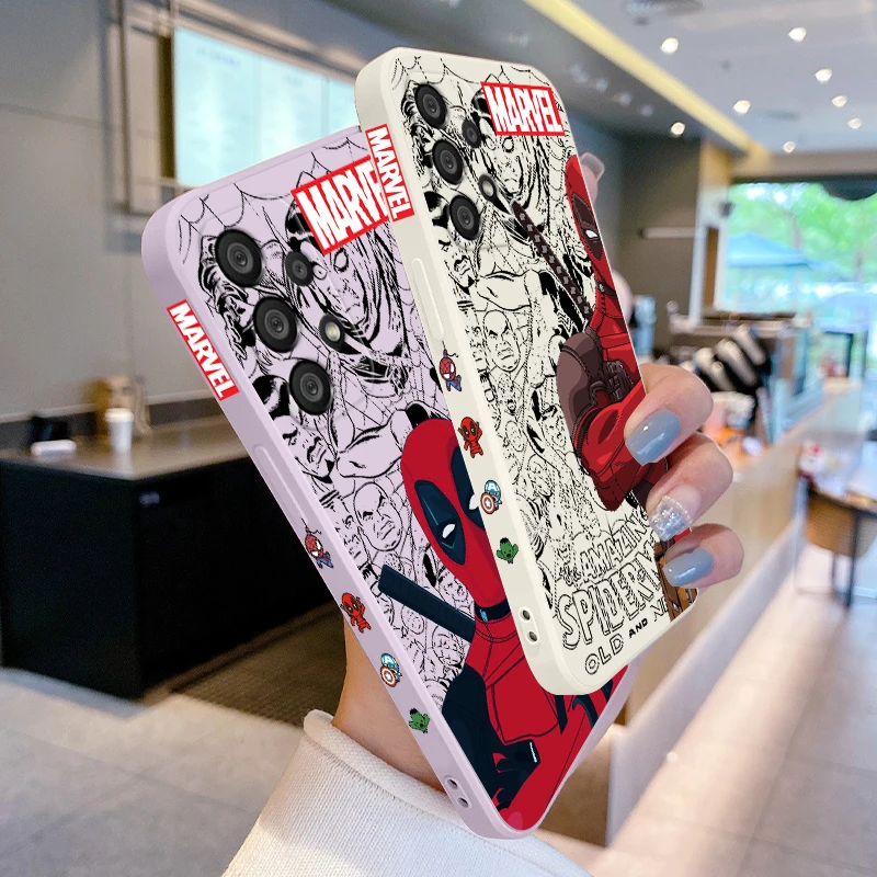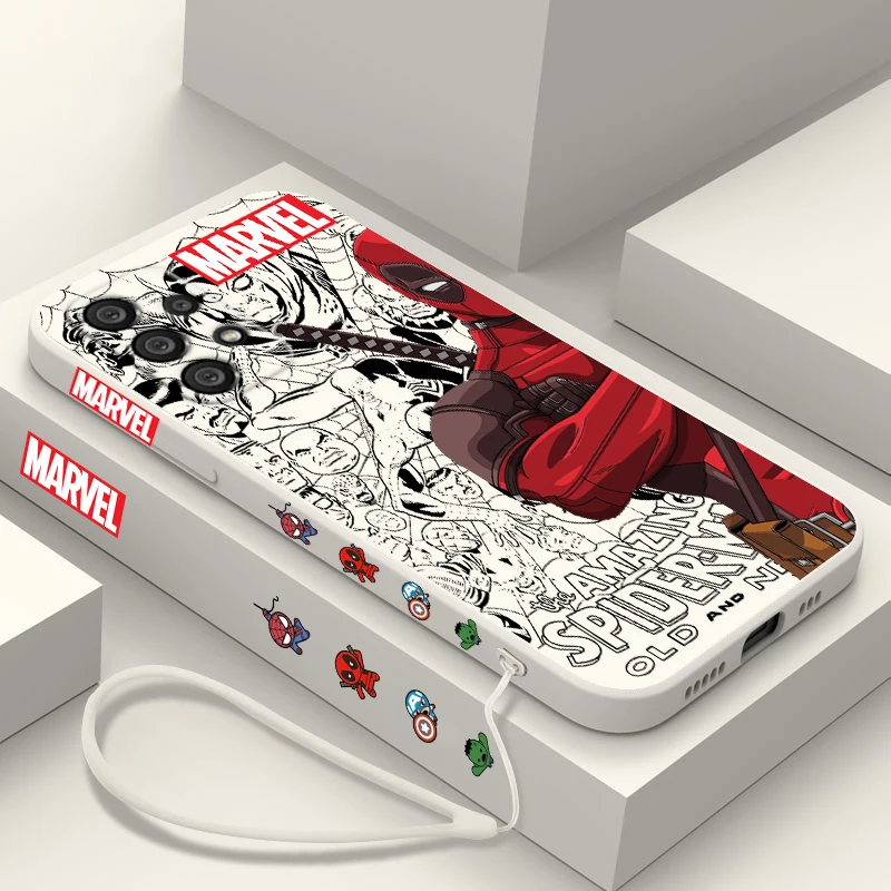Funda de teléfono de superhéroe de Marvel Deadpool para Samsung, A55, A53, A33, A52, A32, A71, A51, A21S, A35, A25, 5G, cuerda líquida izquierda