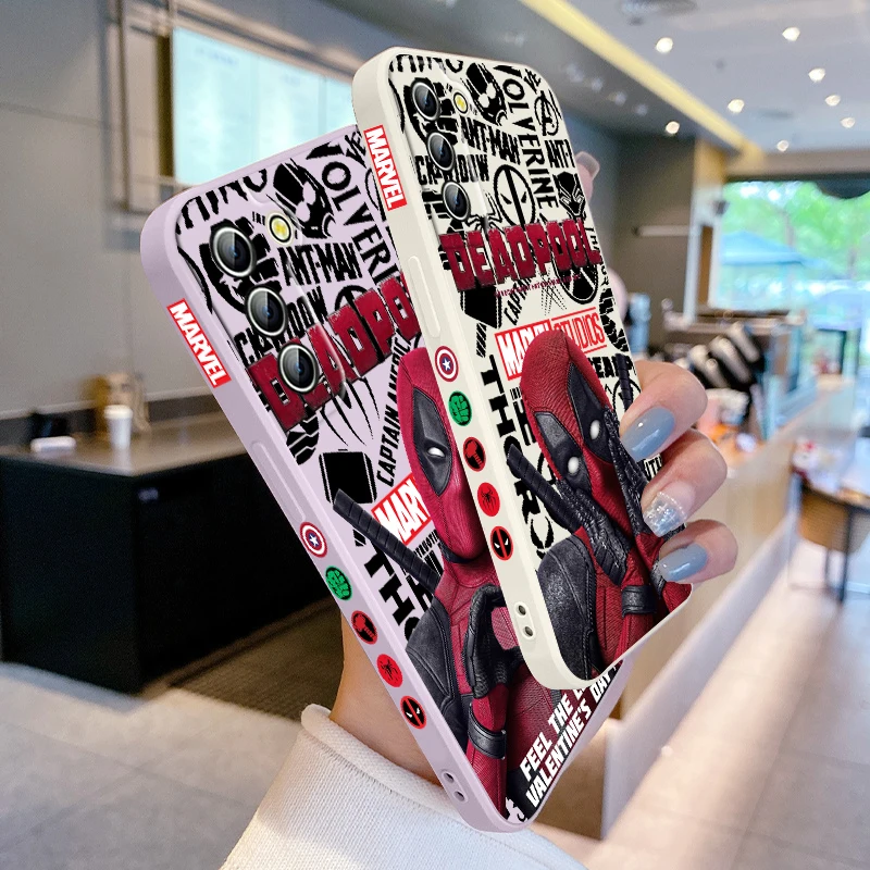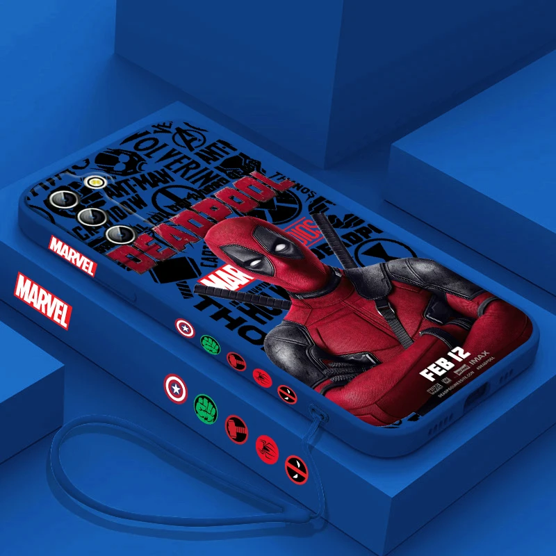 Funda de teléfono de superhéroe de Marvel Deadpool para Samsung Galaxy S24, S23, S22, S21, S20 Pro, FE Plus, funda de cuerda izquierda Ultra líquida
