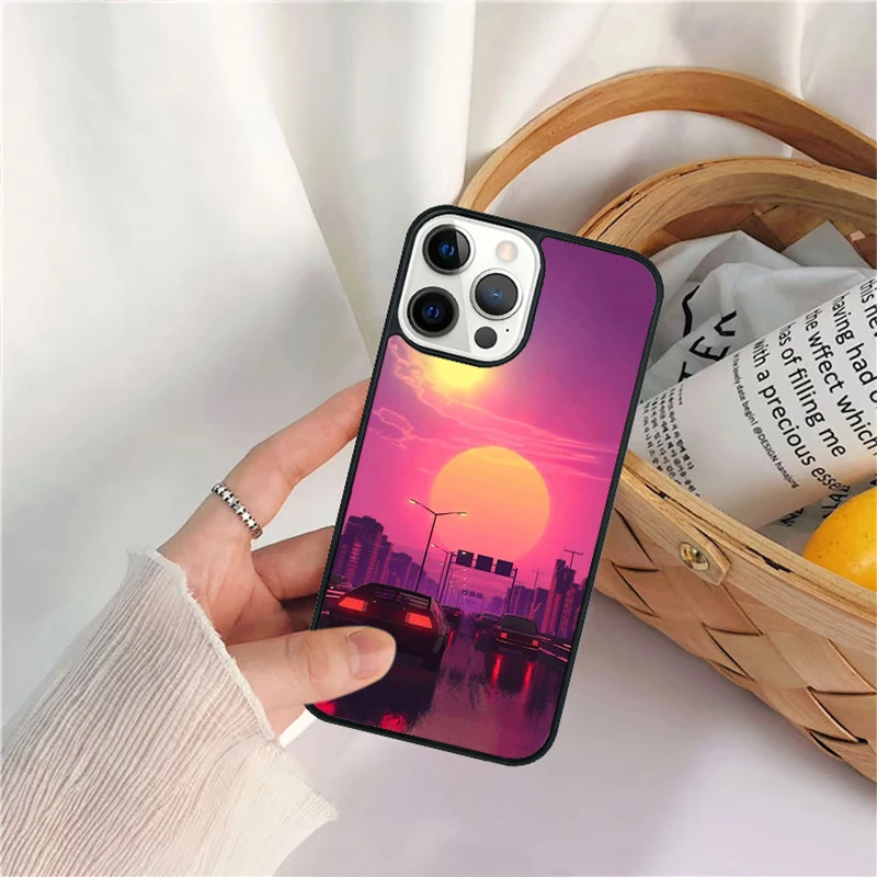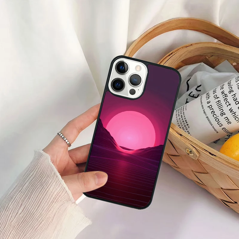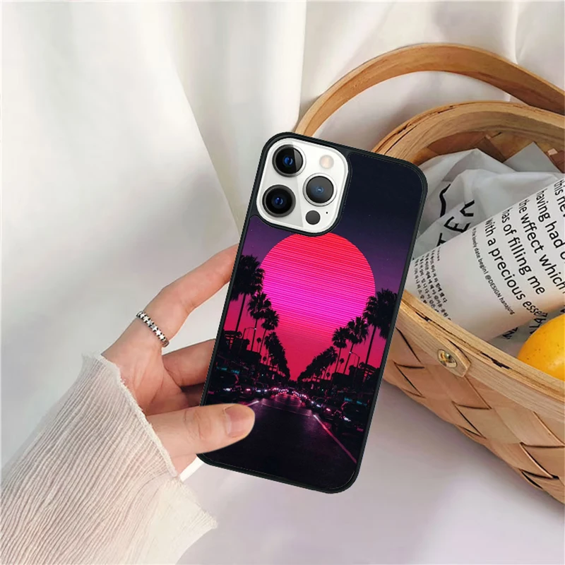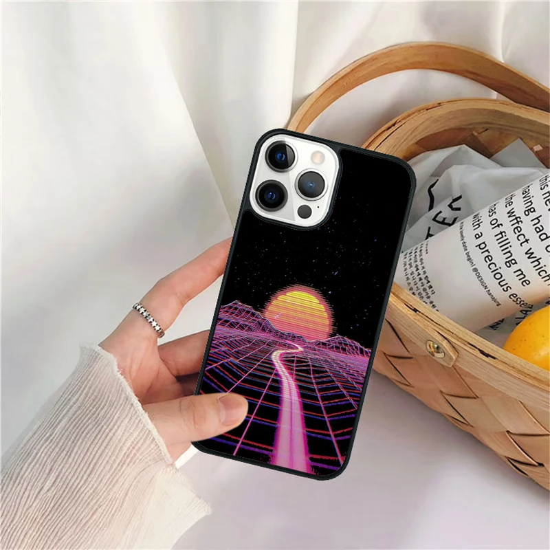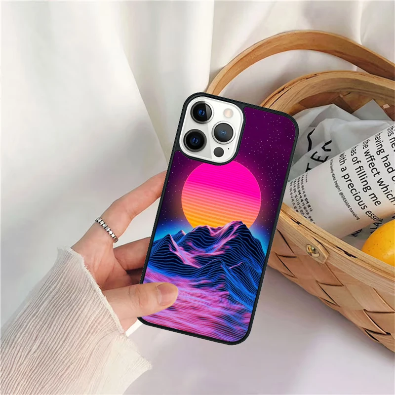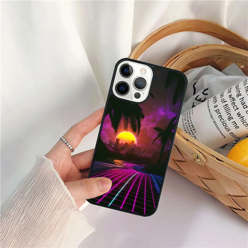 Funda de teléfono Synthwave Sun Neon 80's para iPhone 17 Air 16 15 14 11 12 13 Pro MAX Plus coque