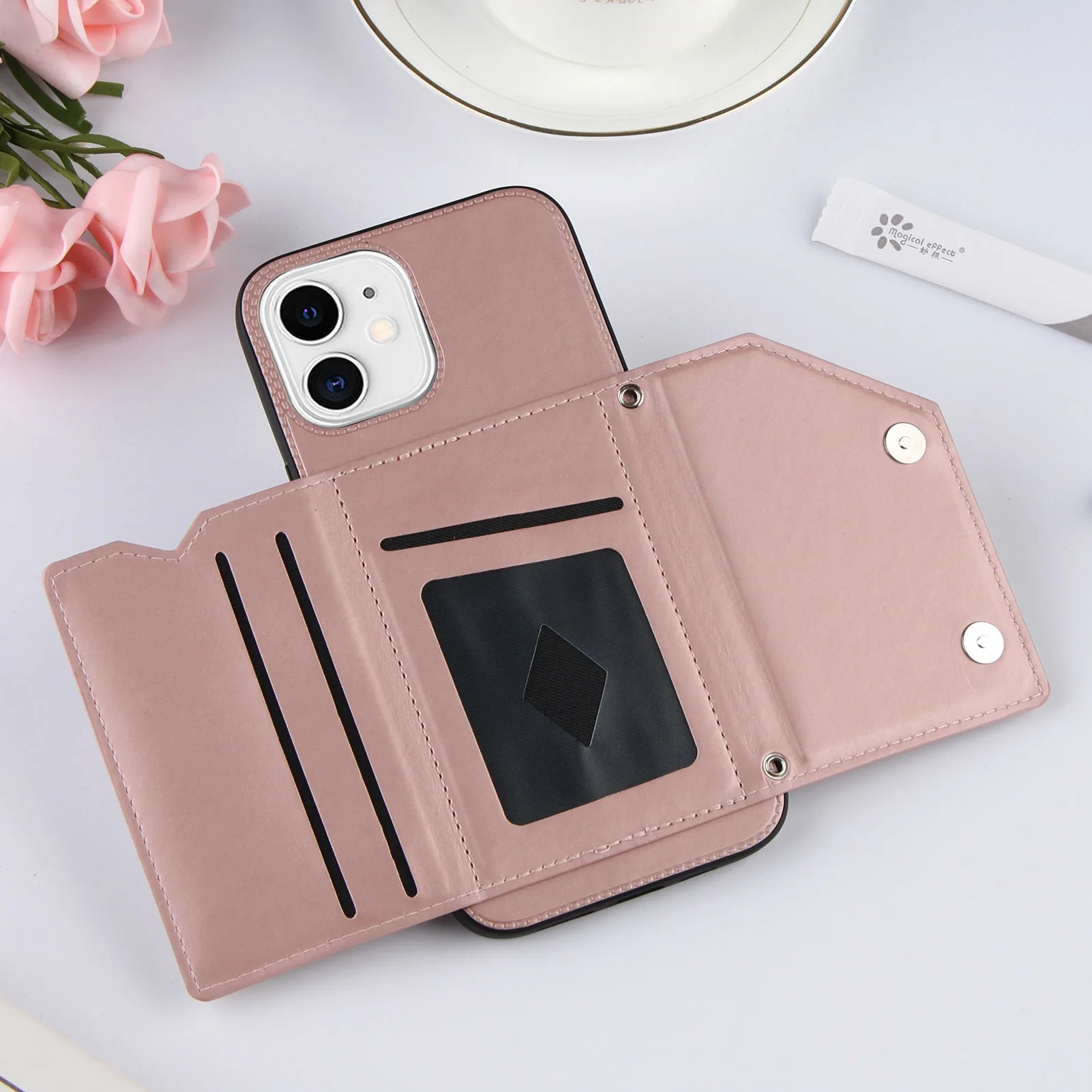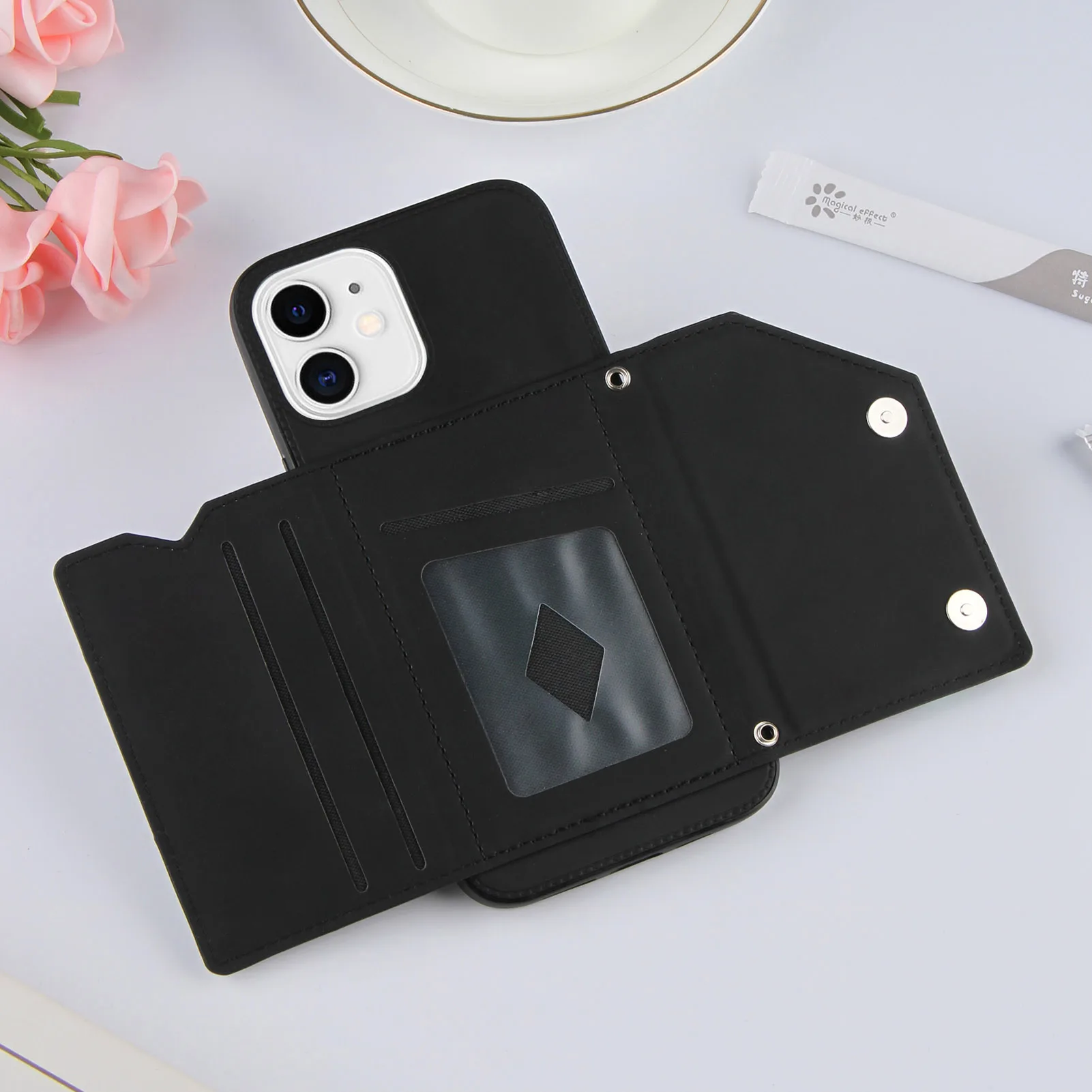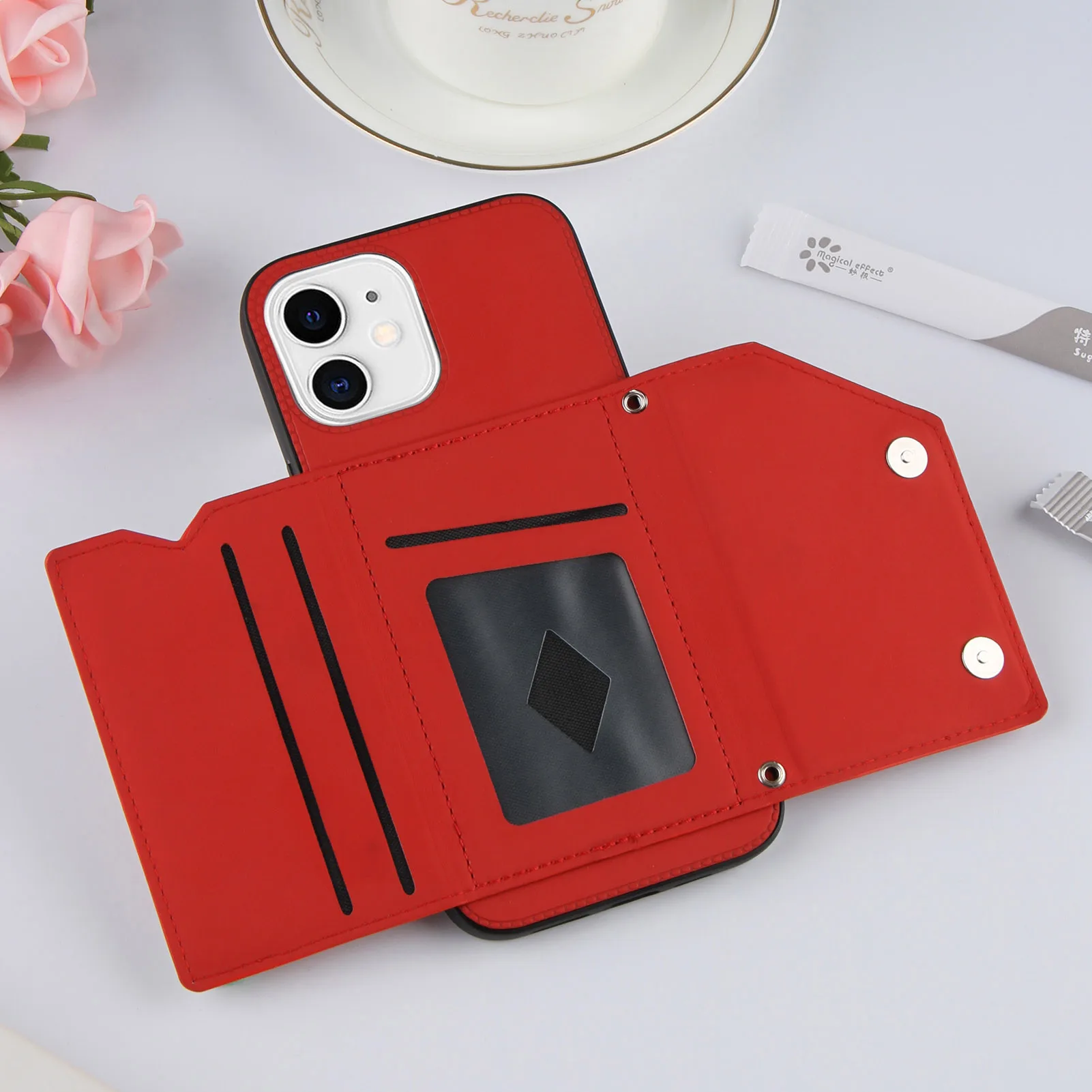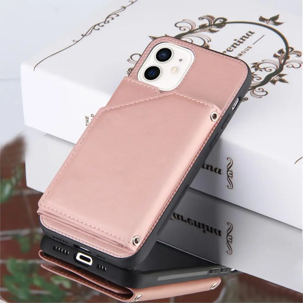 Funda de teléfono con Tapa de cuero PU para iPhone 14 Pro Max13 Mi 12 mini 11 Pro XS Max X XR 7 8 SE2 2020, cartera con ranuras para tarjetas, cubierta a prueba de golpes