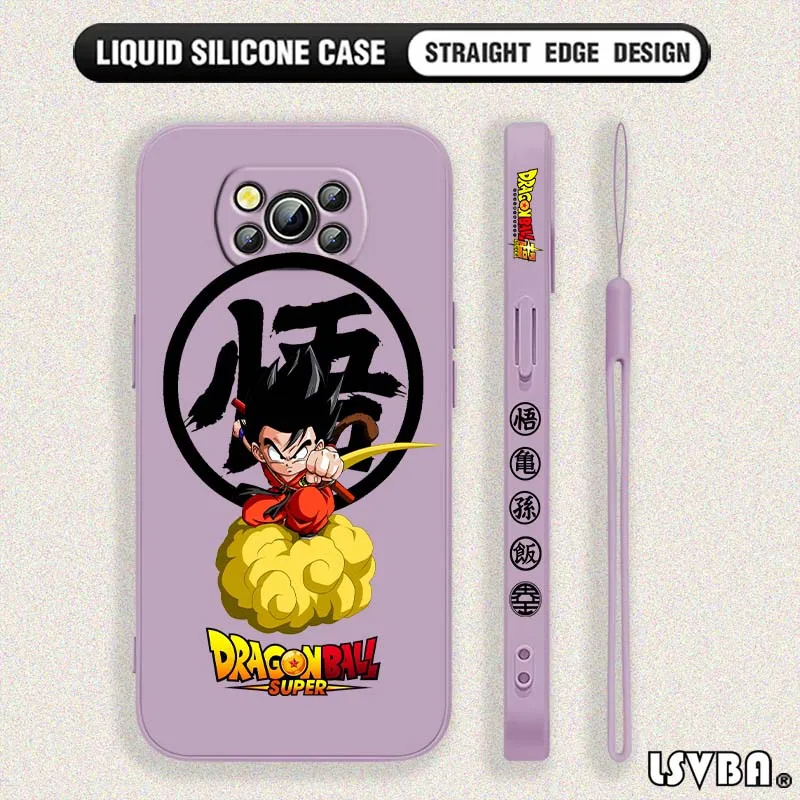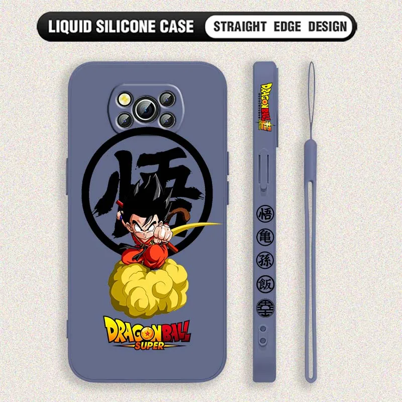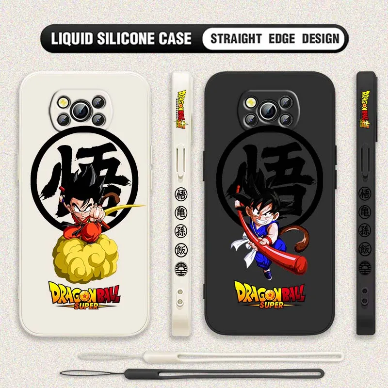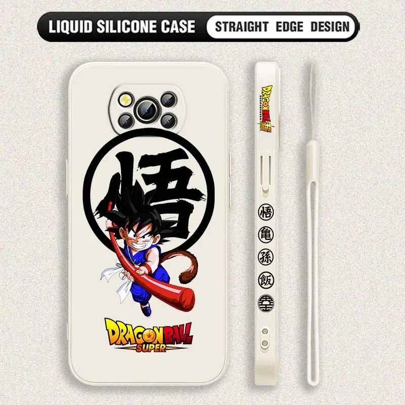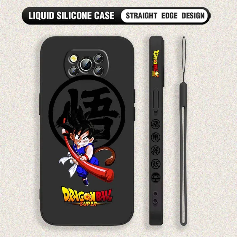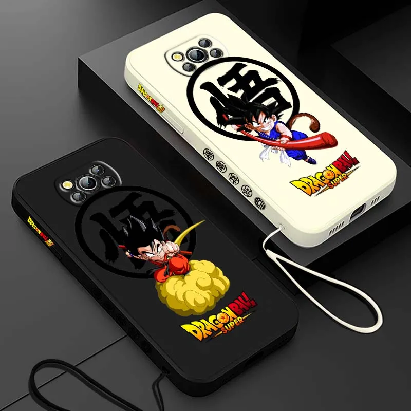 Funda de teléfono con tarjetas dragon ball Son Goku para Xiaomi Poco X6 X5 X4 X3 M6 M5 M3 F6 F5 F4 F3 GT Pro 5G, funda de teléfono con cuerda izquierda líquida