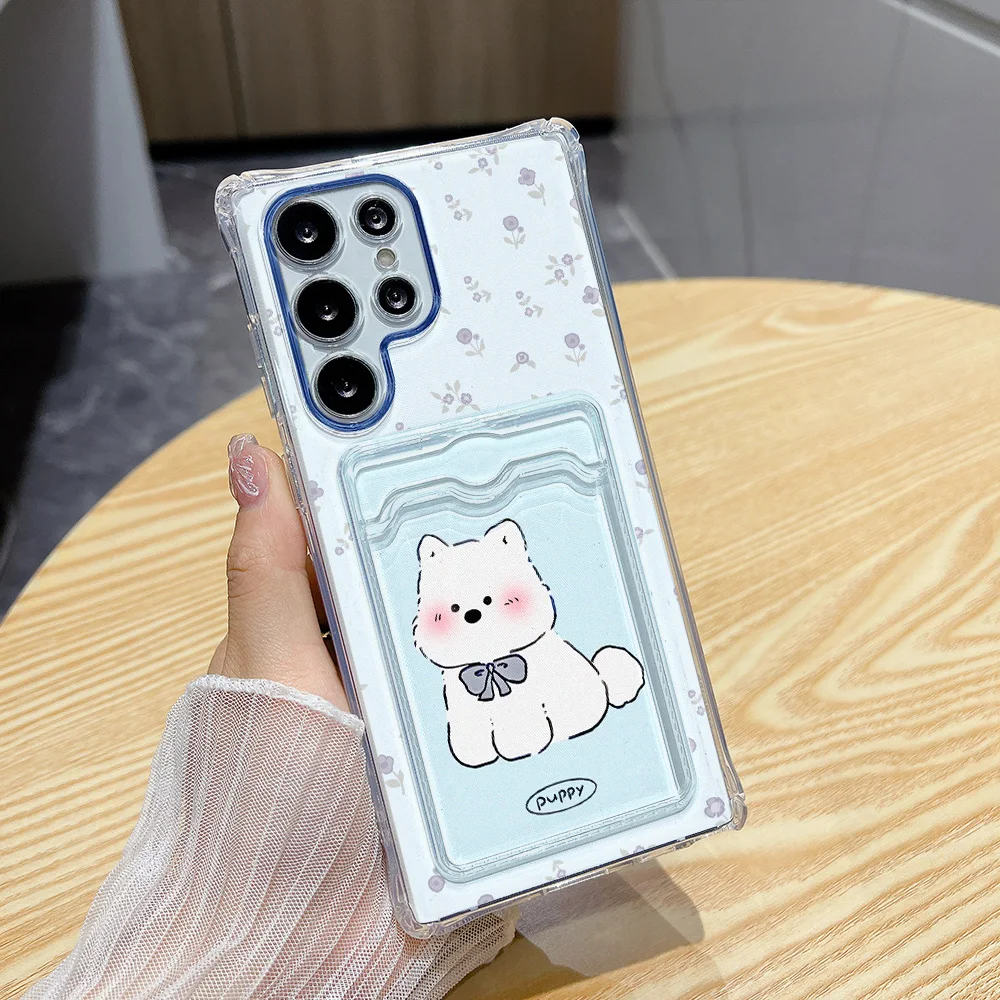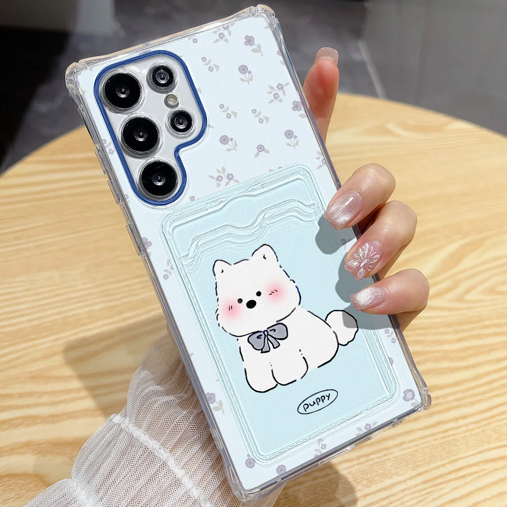 Funda de teléfono con diseño de Animal cortado con tarjetero para Samsung S25 Ultra Galaxy S24 S23 FE S22 Plus A05 A05s fundas transparentes suaves a prueba de golpes