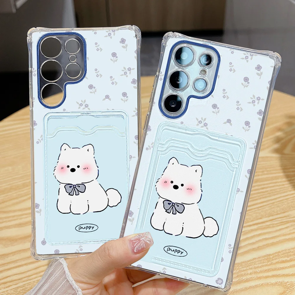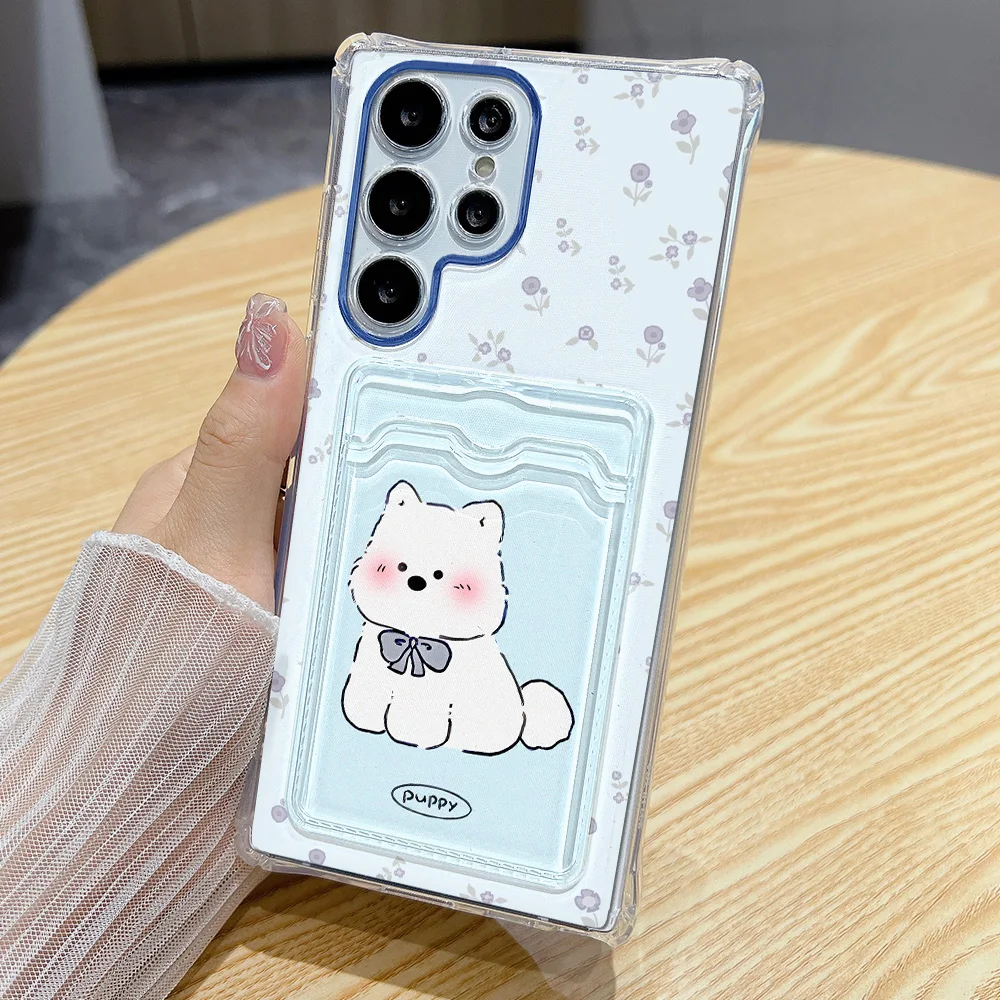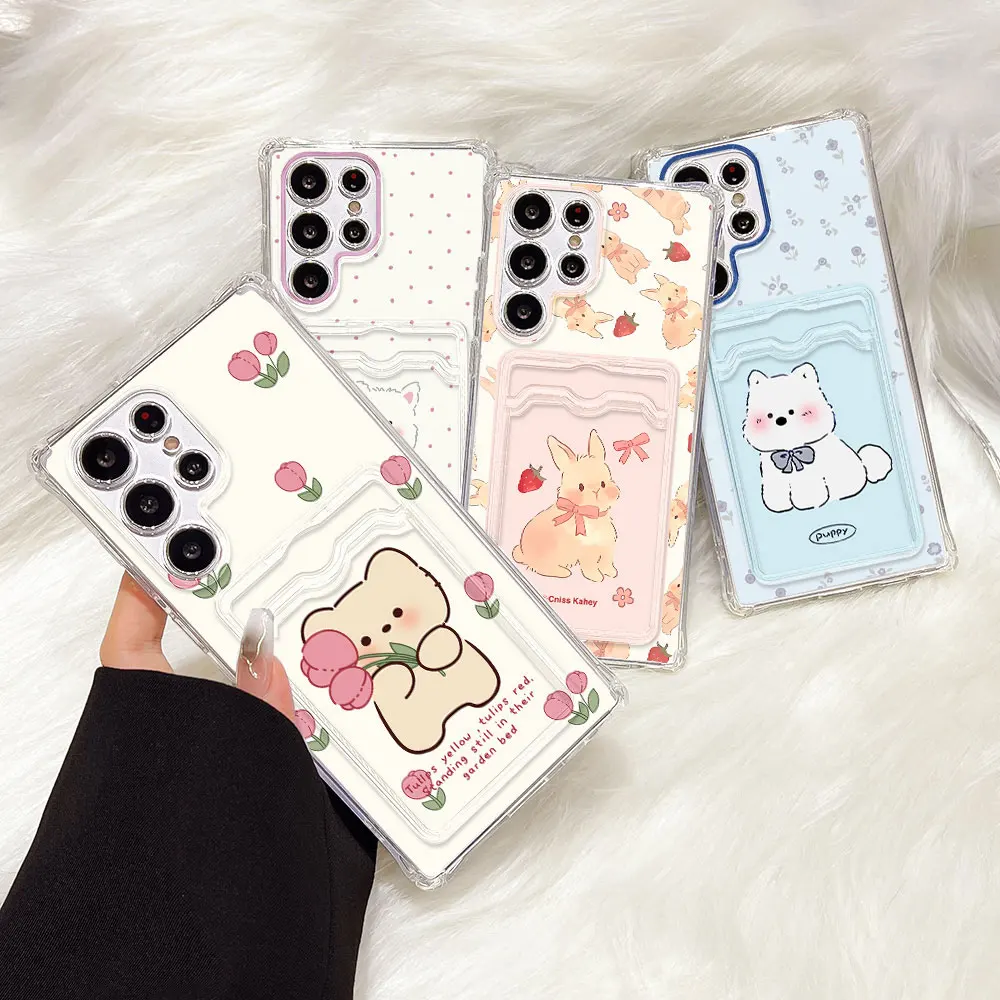 Funda de teléfono con diseño de Animal cortado con tarjetero para Samsung S25 Ultra Galaxy S24 S23 FE S22 Plus A05 A05s fundas transparentes suaves a prueba de golpes