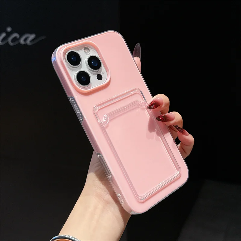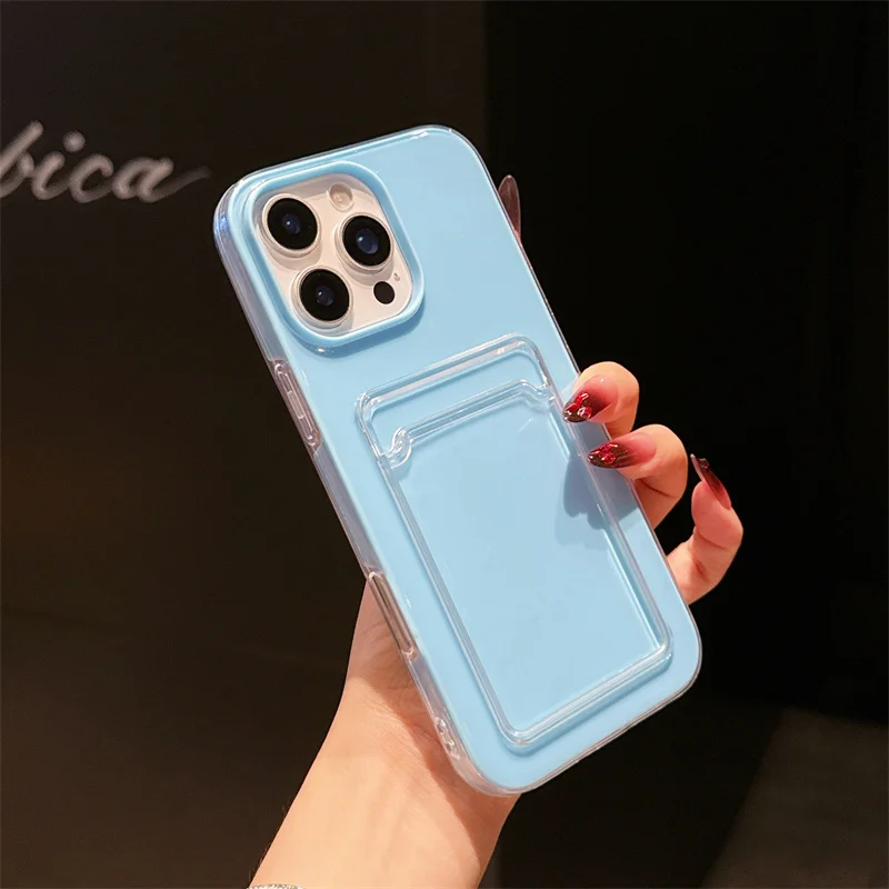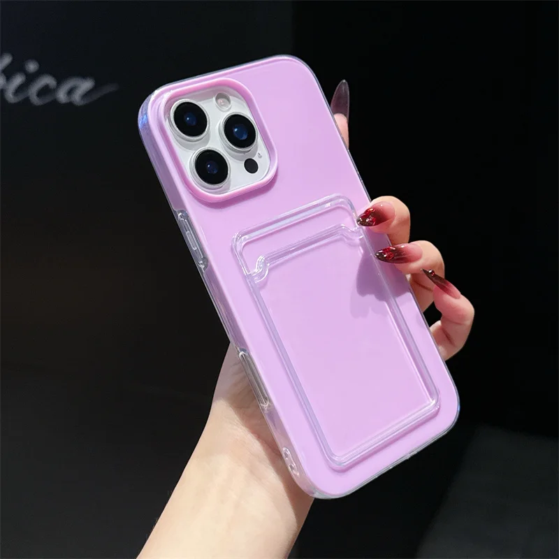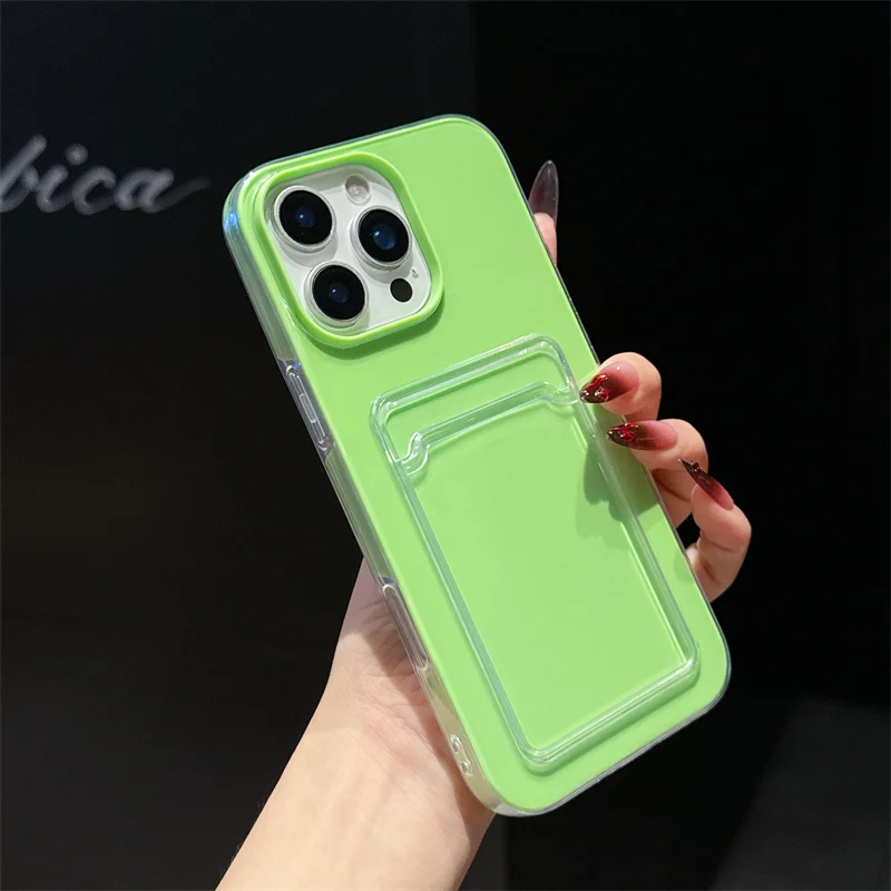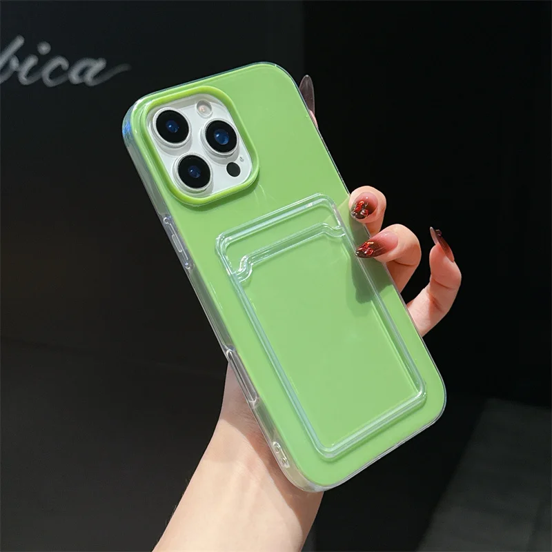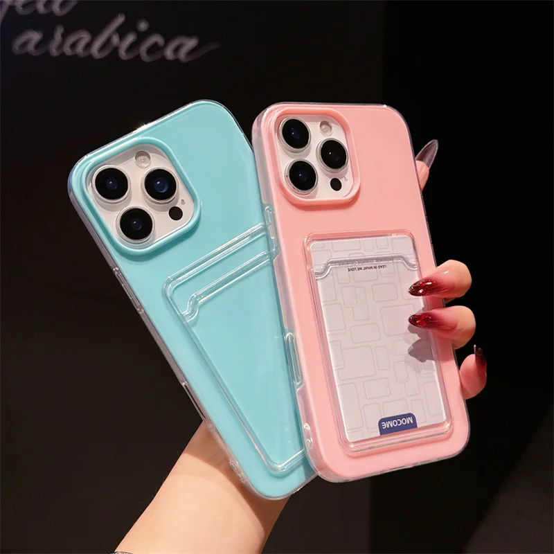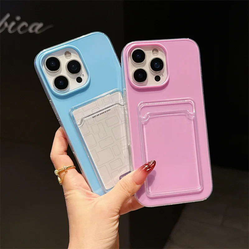 Funda de teléfono con tarjetero de Color caramelo de gelatina Simple Slim 2 en 1 para iPhone 16 15 14 Plus 13 12 11 Pro Max, funda trasera de Airbag de TPU suave