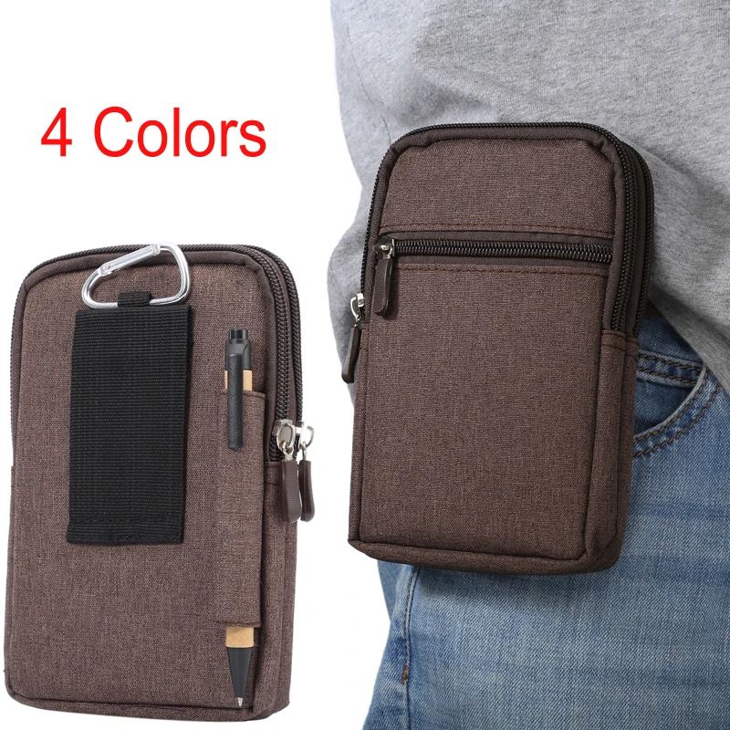 Comprar Funda de teléfono de tela vaquera, bolsa con Clip para cinturón para Iphone 7, 8, 11, 12, X, Samsung S8, S9, S10, S20, riñonera deportiva con 3 cremalleras
