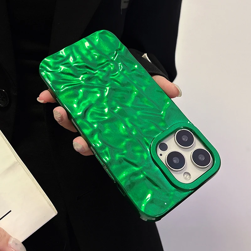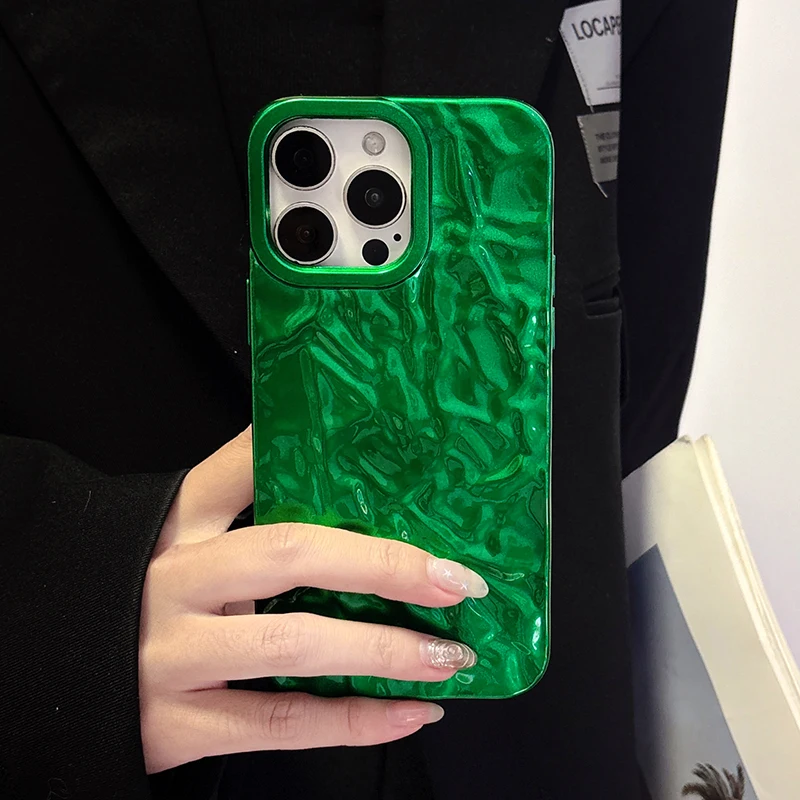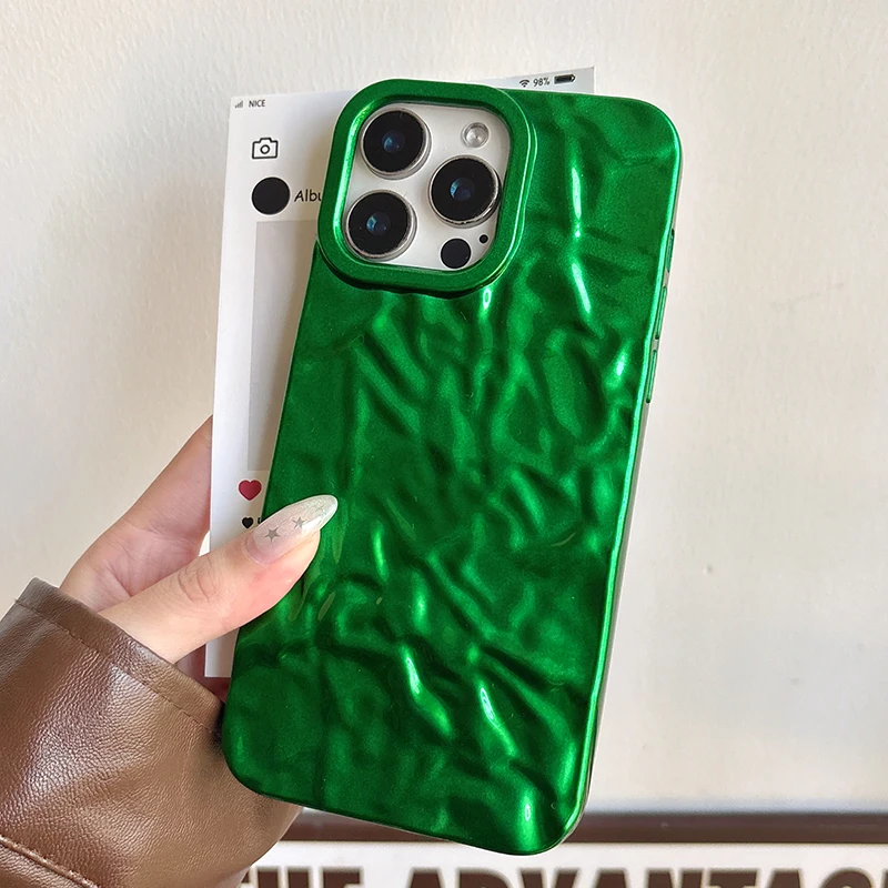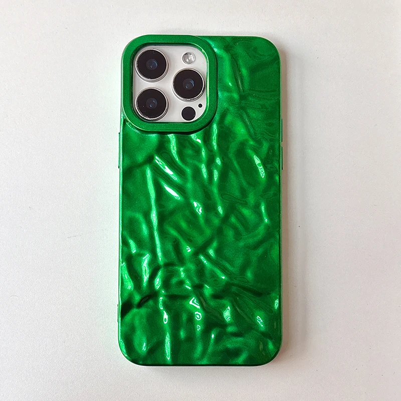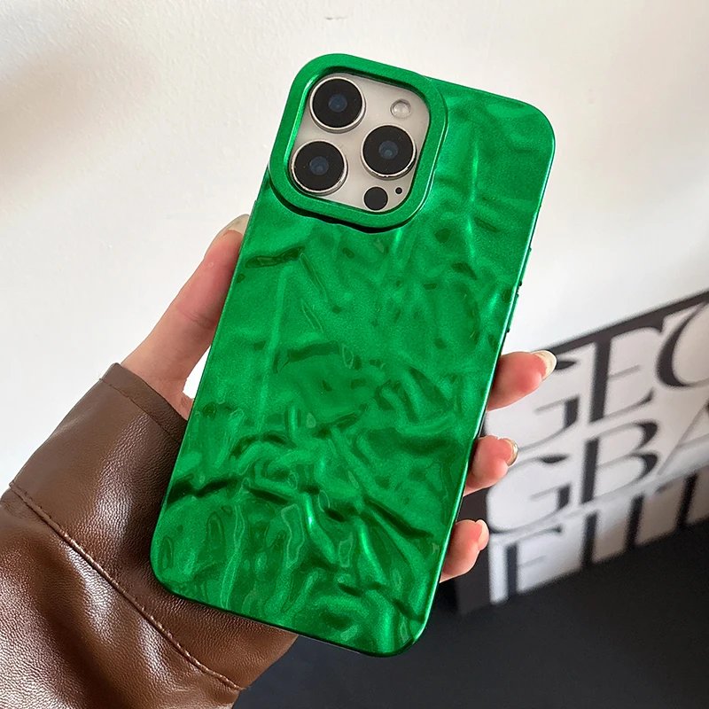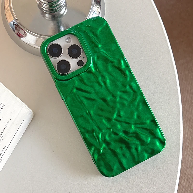 Funda de teléfono con textura arrugada y verde de Metal chapado para iPhone 16 Pro Max 15 13 12 11 14 Plus XR X XS Max Funda trasera de TPU suave