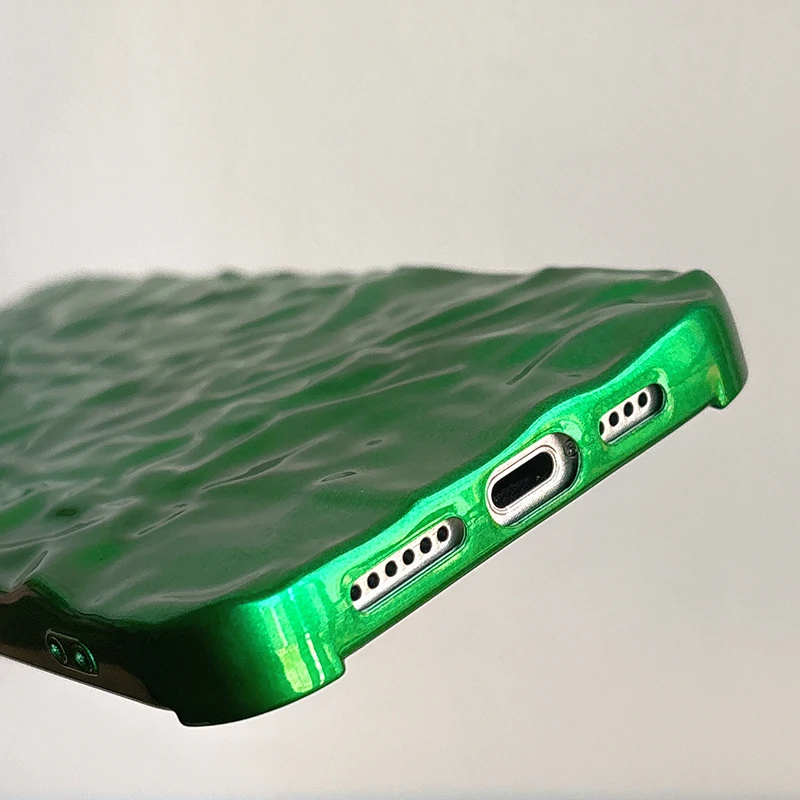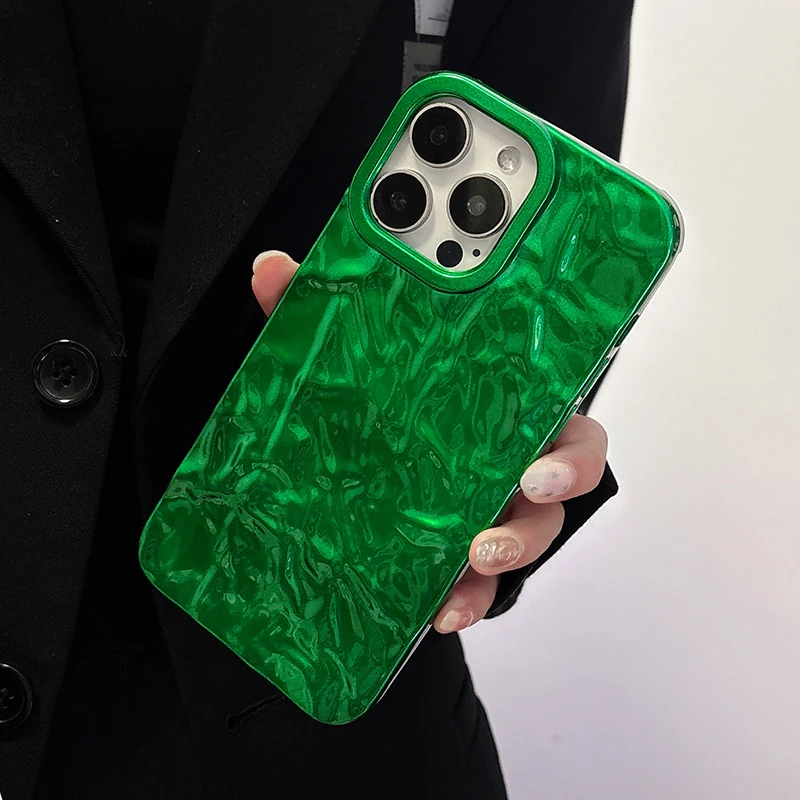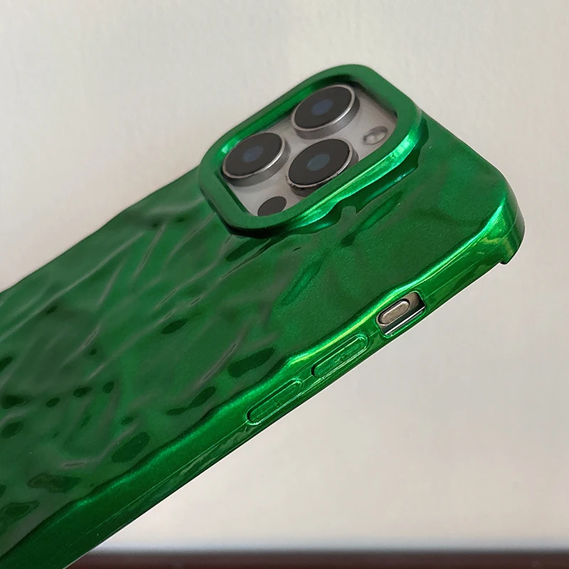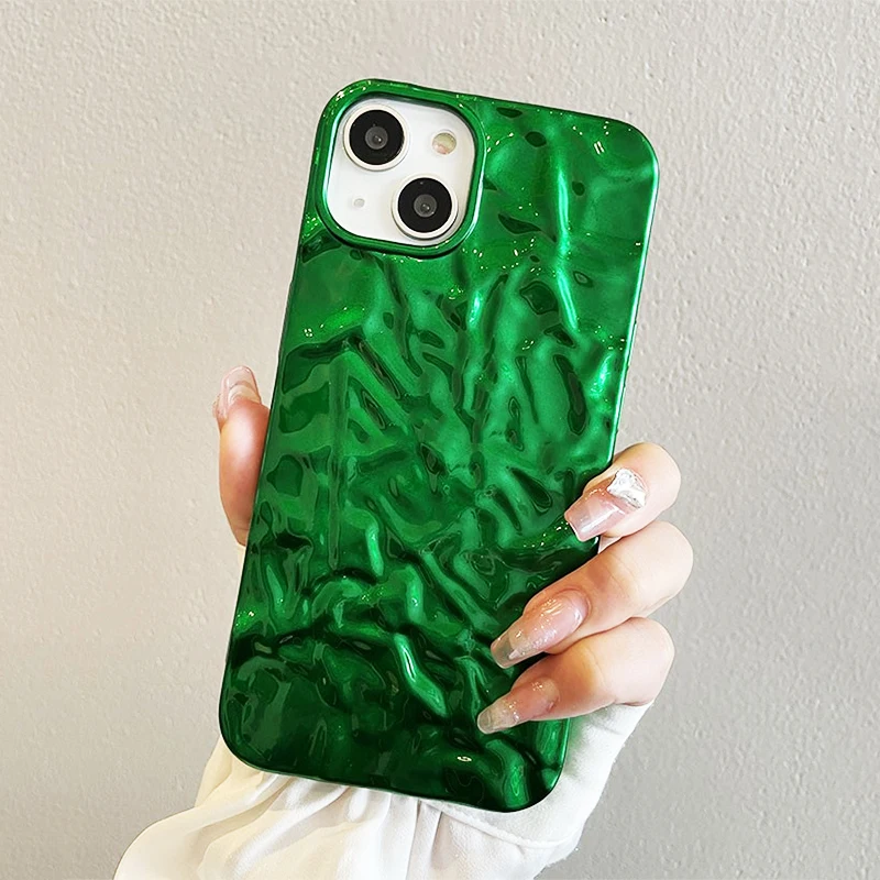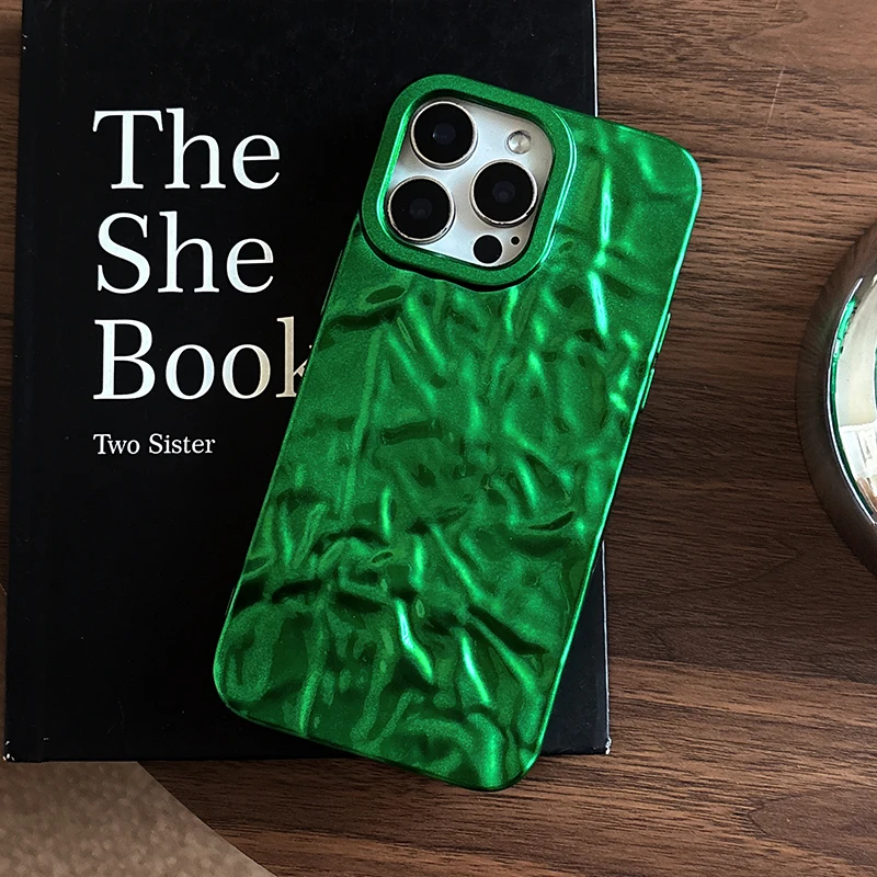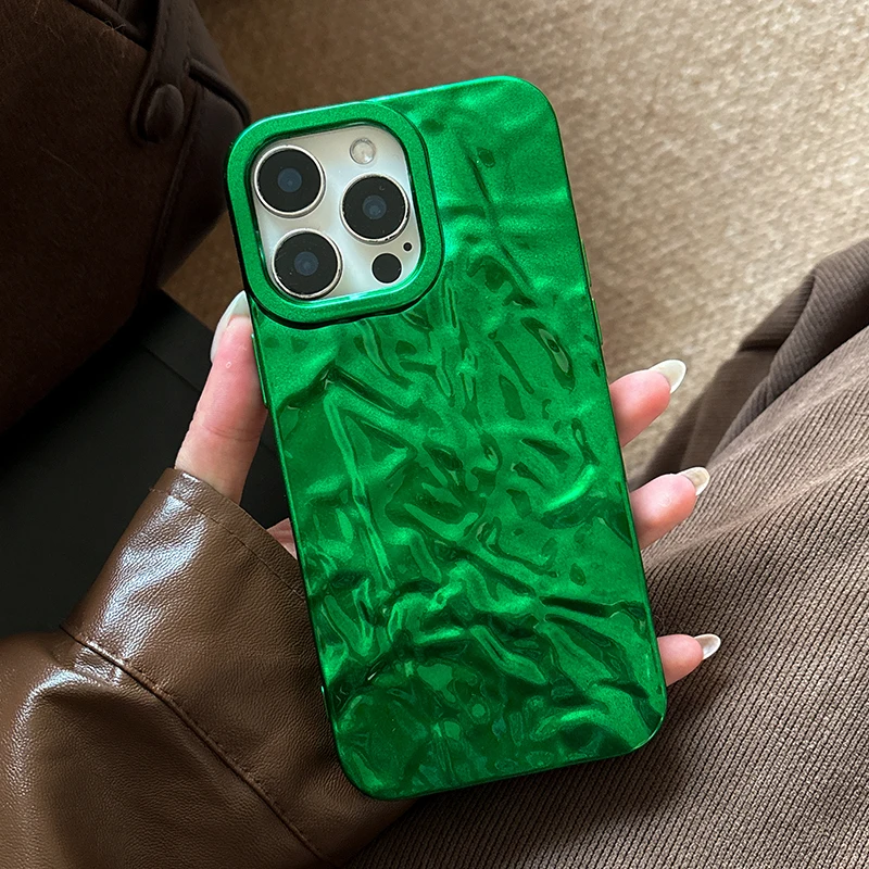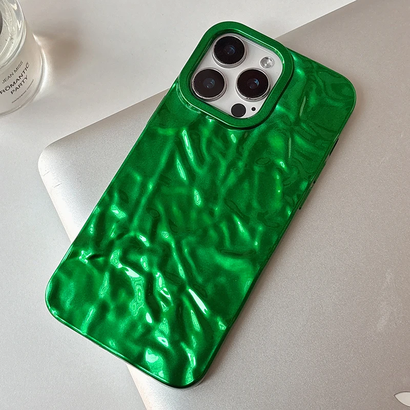 Funda de teléfono con textura arrugada y verde de Metal chapado para iPhone 16 Pro Max 15 13 12 11 14 Plus XR X XS Max Funda trasera de TPU suave