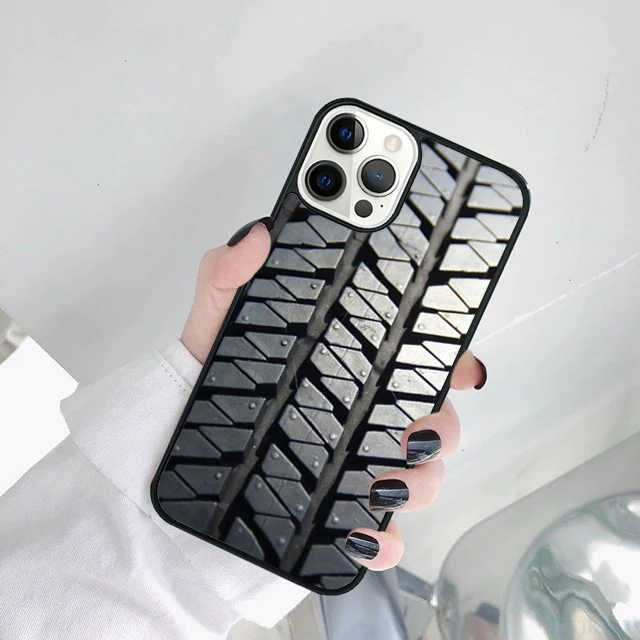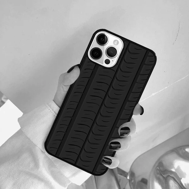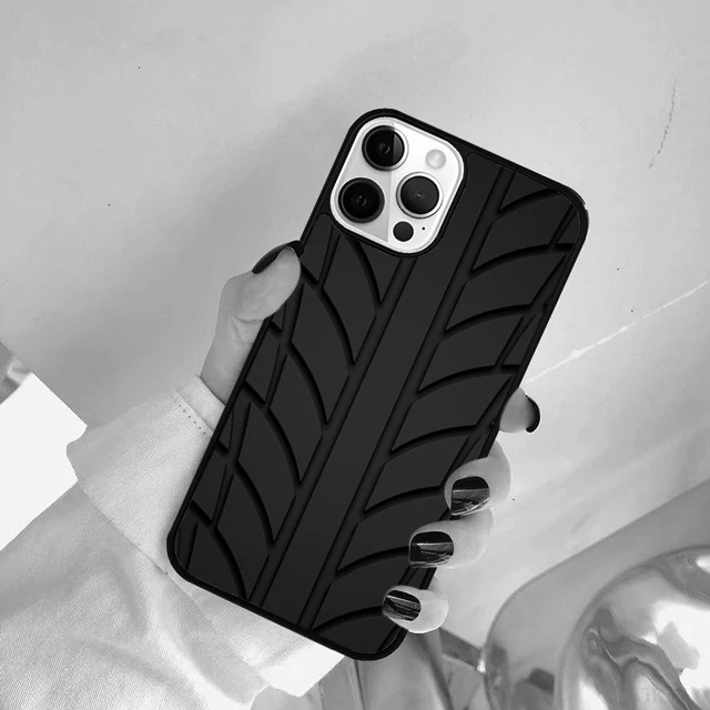 Funda de teléfono con textura de banda de rodadura de neumático negro para iPhone 17 Air 15 Pro MAX 16 Plus 14 11 12 13 Coque