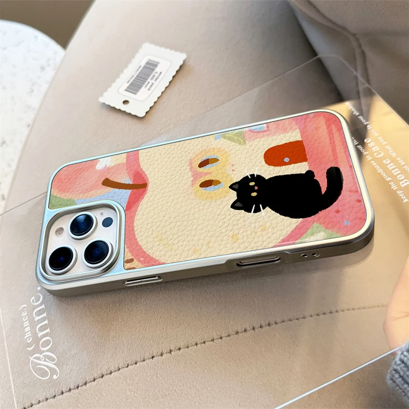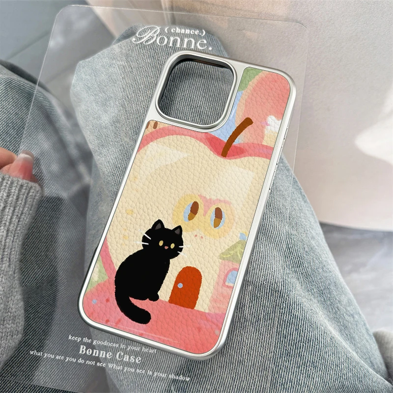 Funda de teléfono con textura de cuero con patrón de gato Apple para iPhone11/12/13/14/15/16/60 Pro Max AIR PLUS