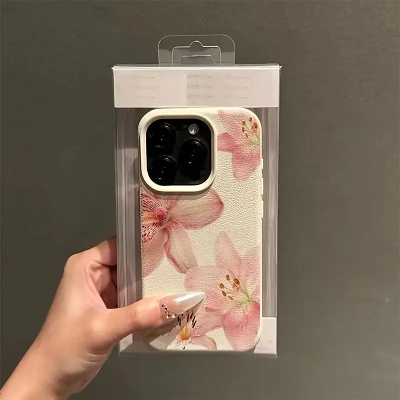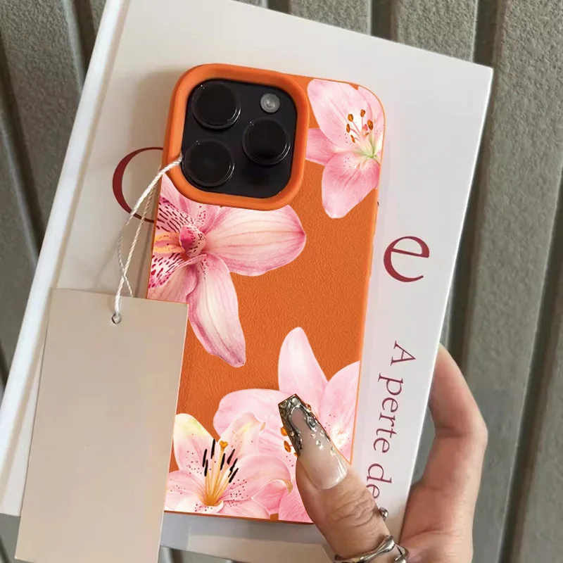 Funda de teléfono con textura de lichi y flor de lirio rosa para iPhone 17 Pro Max 11 12 13 14 15 16 Pro 17 Air 15 14 Plus X XS XR 16E, funda suave