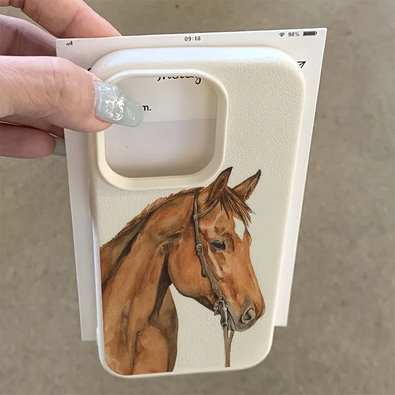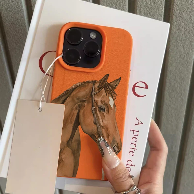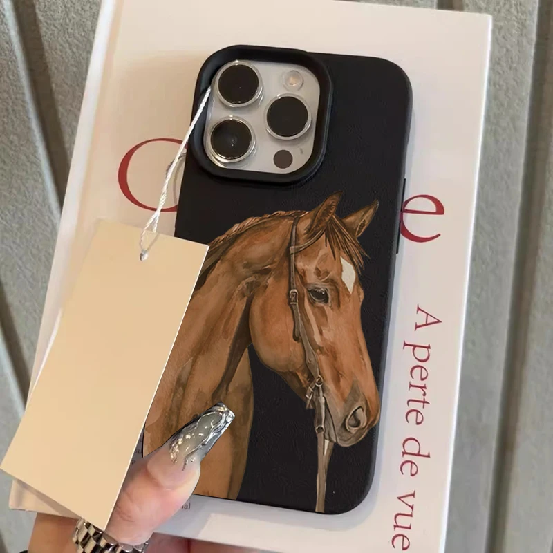 Funda de teléfono con textura de litchi con patrón de caballo marrón para iPhone 17 Pro Max 11 12 13 14 15 16 17 Air 15 14 Plus X XS XR 16E, funda suave