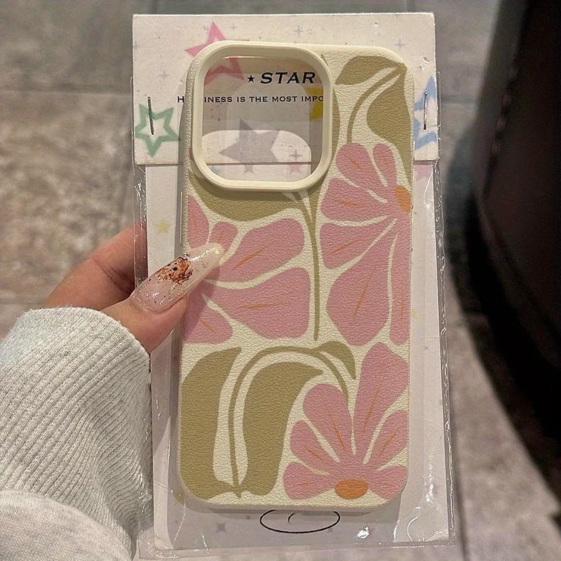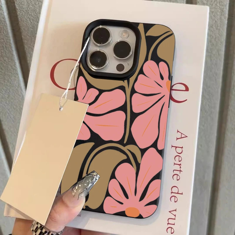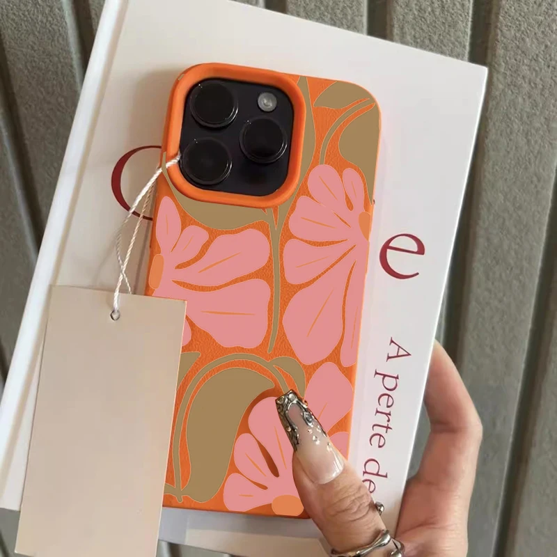 Funda de teléfono con textura de lichee y patrón de flores rosas para iPhone 17 Pro Max 11 12 13 14 15 16 Plus 17 Air X XS XR 16E, funda suave