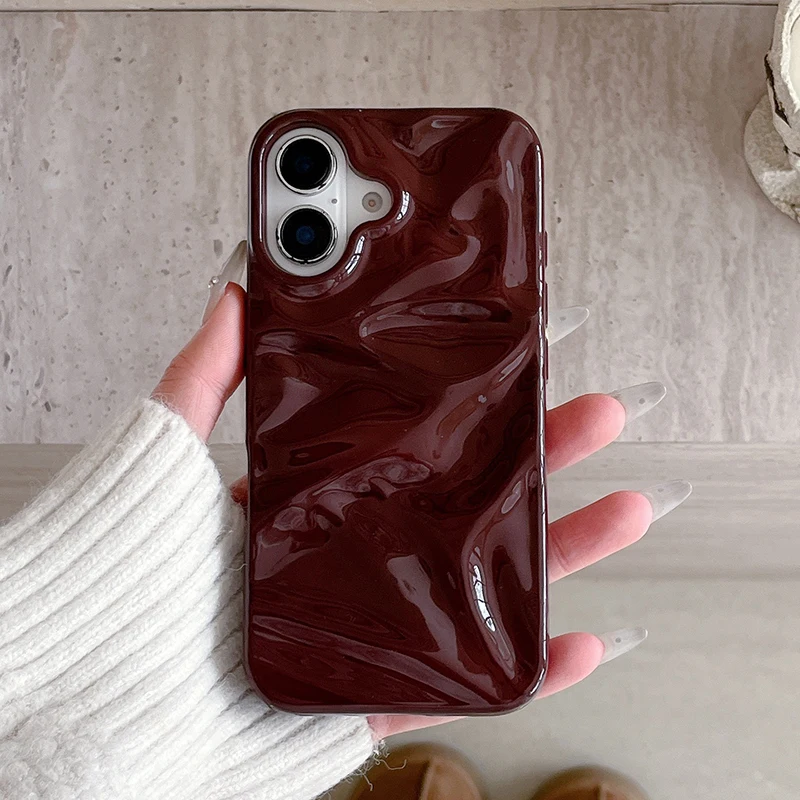 Comprar Funda de teléfono con textura ondulada de agua 3D, color rojo vino, para iPhone 17 Air 16 15 13 11 12 Pro Max 14 Plus, funda trasera de silicona brillante