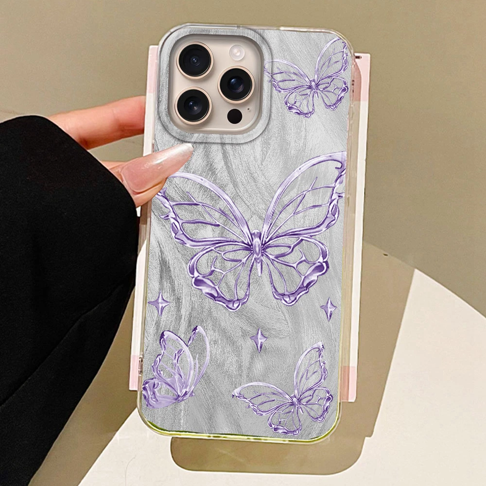 Comprar Funda de teléfono con textura de pluma y mariposa plateada láser para mujer, funda para iphone 16 15 14 7 8 Plus 13 11 12 Pro Max X XS XR SE 2022 16e