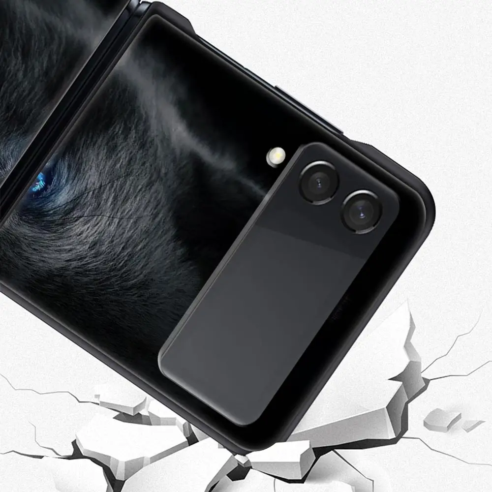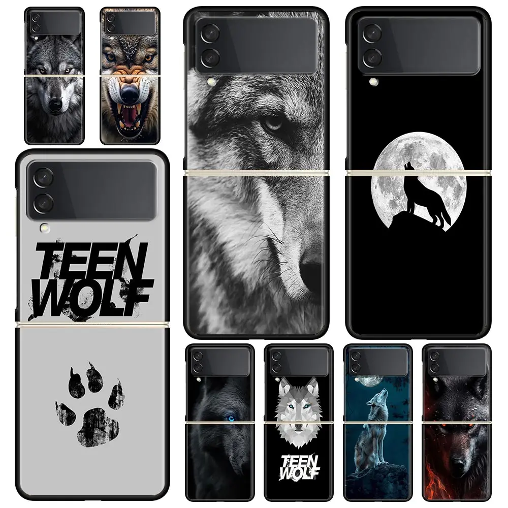 Funda de teléfono The Wolf para Samsung Galaxy Z Flip3 Flip4 Flip5 PC, carcasa parachoques para Z Flip 3 4 5, cubierta trasera plegable dura negra