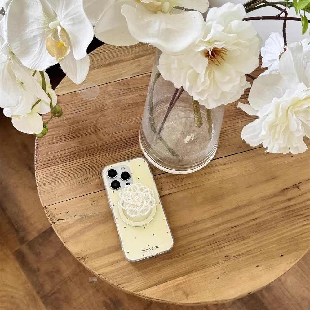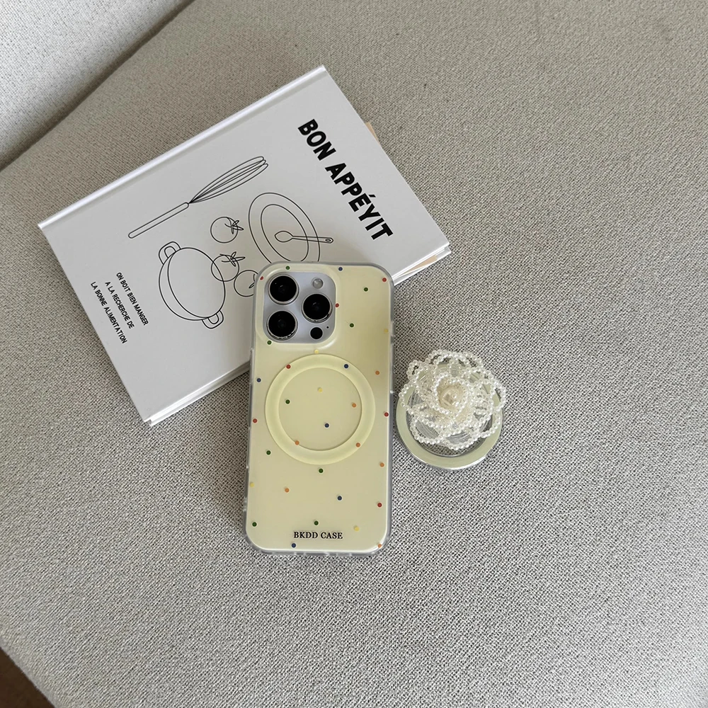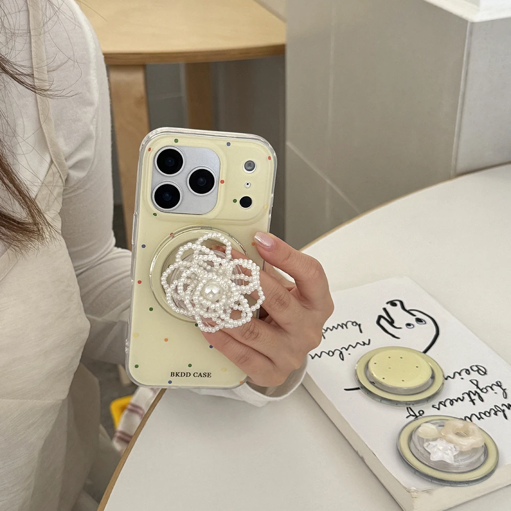 Funda de teléfono tok con agarre magnético de lunares de color perla 3D para iPhone 17 16 15 14 13 Pro Max Carga inalámbrica Compatible con Magsafe Lovely Girl Cover