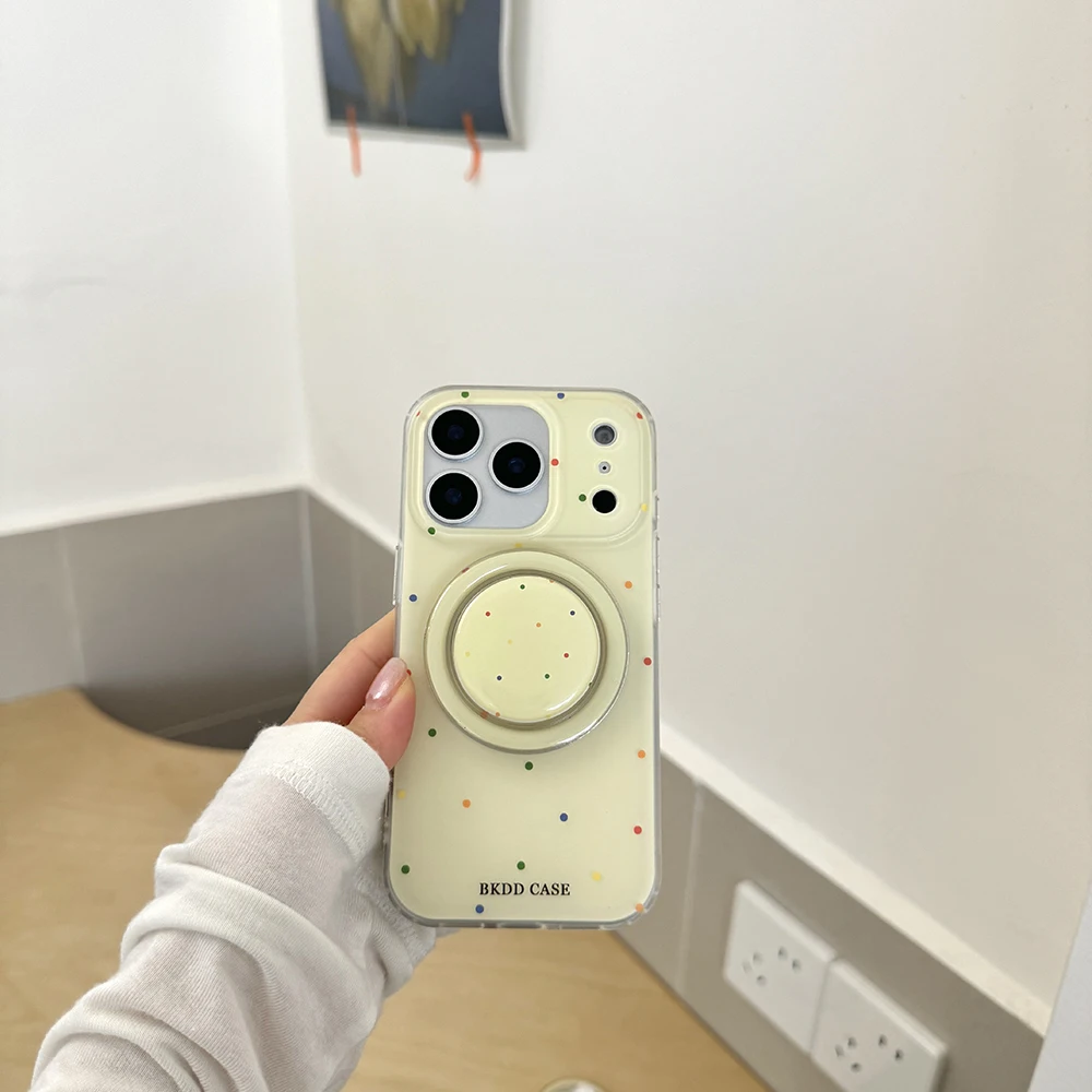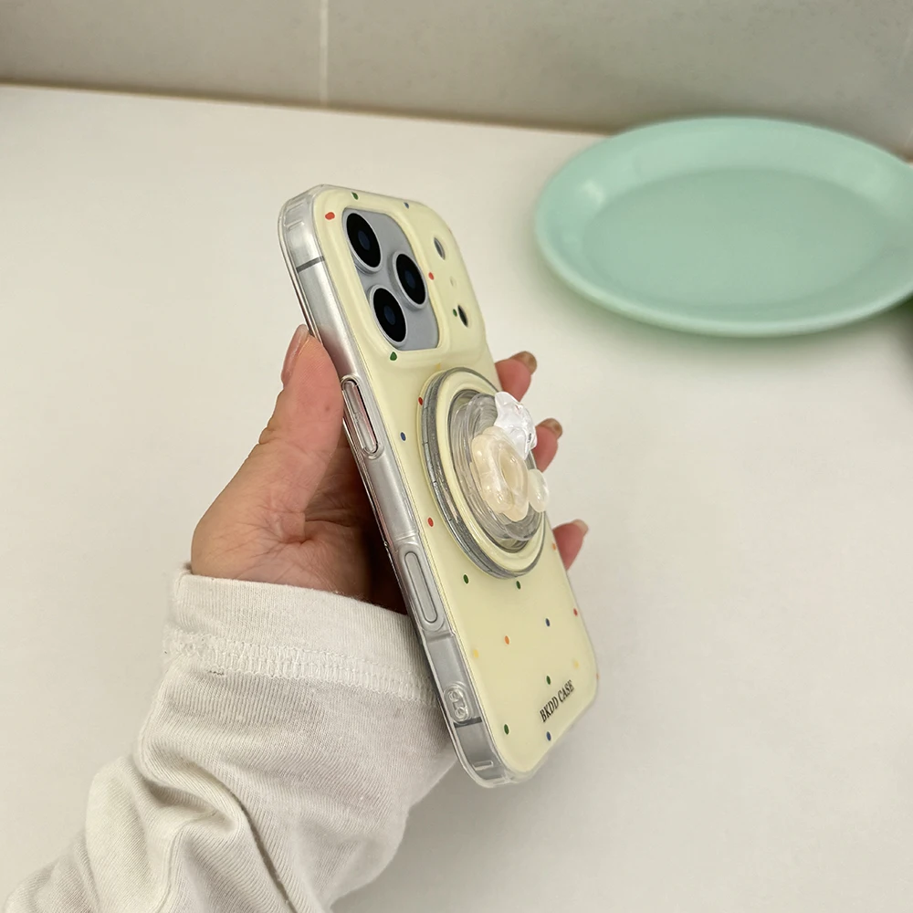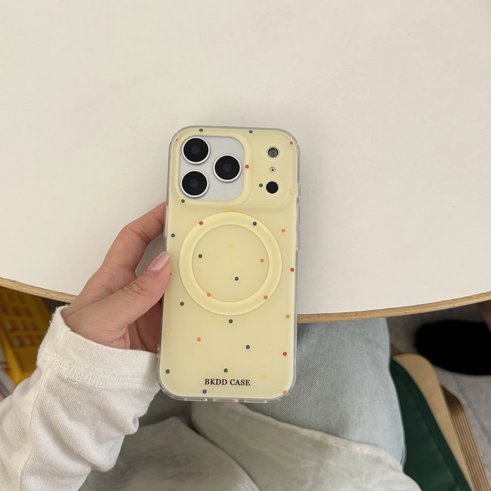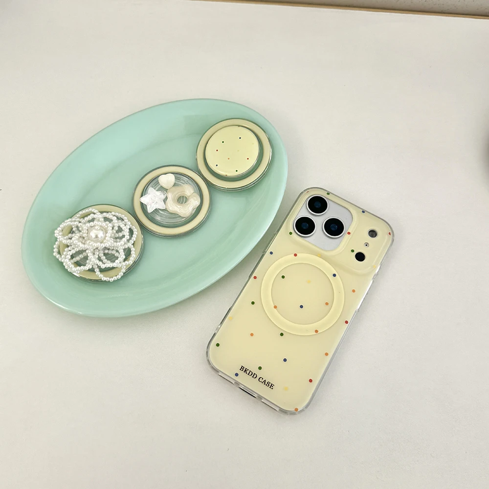 Funda de teléfono tok con agarre magnético de lunares de color perla 3D para iPhone 17 16 15 14 13 Pro Max Carga inalámbrica Compatible con Magsafe Lovely Girl Cover