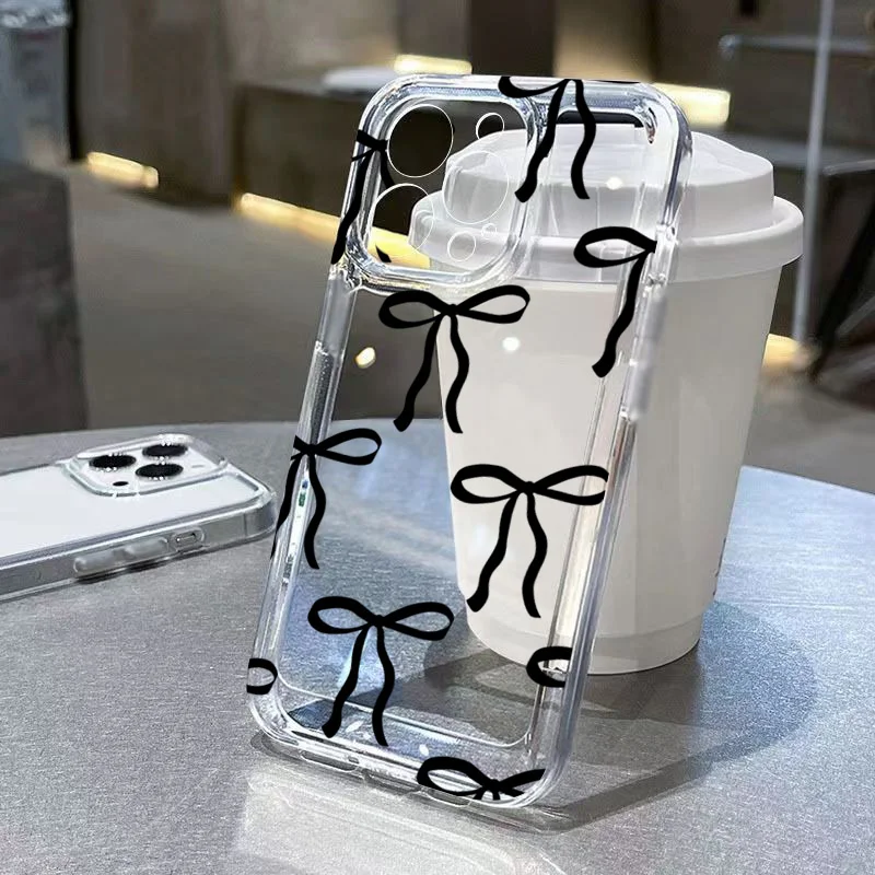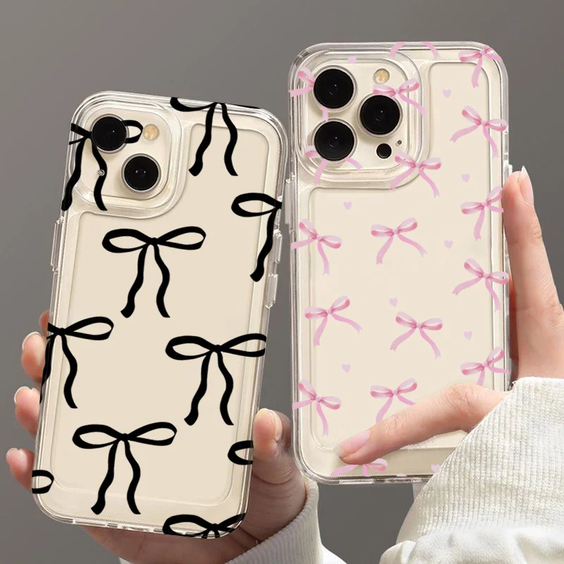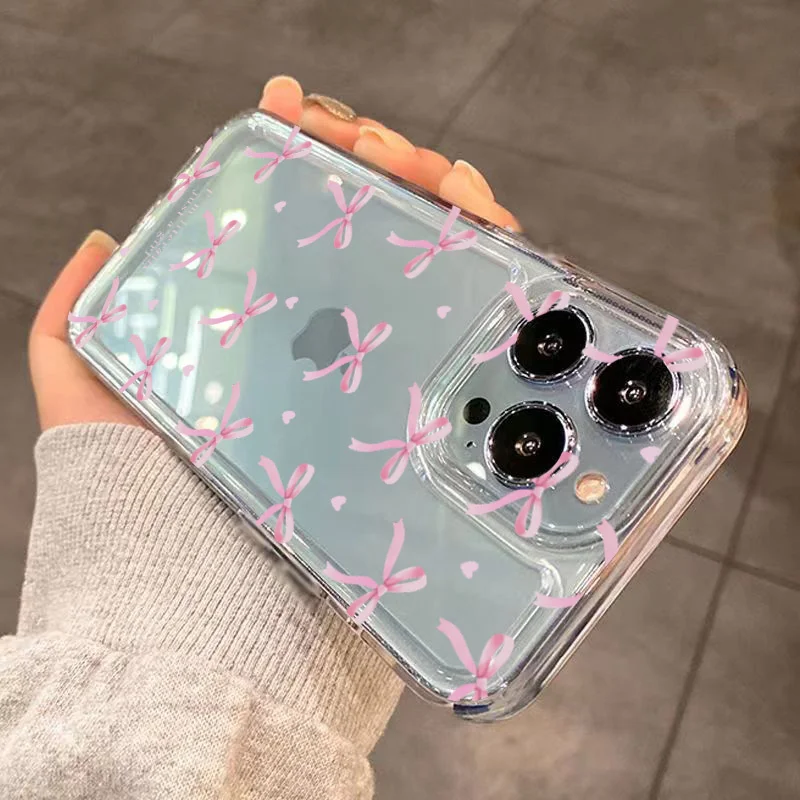 Funda de teléfono de TPU con bonito lazo rosa coreano para iPhone 16 16E 15 14 13 12 11 Pro Max XR Max 7 8 16 Plus SE2 cubierta transparente a prueba de golpes