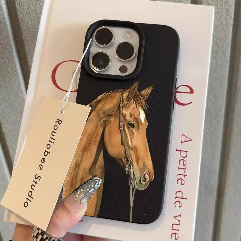 Funda de teléfono de TPU con diseño de caballo marrón para iPhone 17 16 15 14 Pro Max 13 12 11 XS X XR 16E 16 Plus 17 Fundas suaves de aire