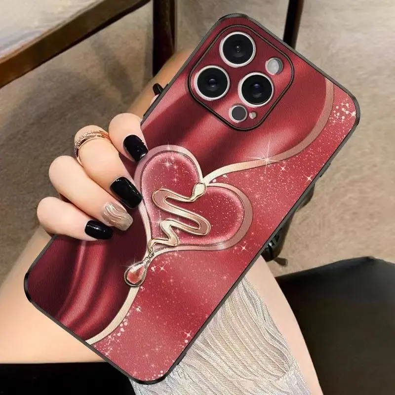 Funda de teléfono de TPU con diseño en forma de corazón púrpura de San Valentín para iPhone 16 Pro Max 15 14 Plus 13 12 Mini 11 XS X XR 7 8 Plus 16E